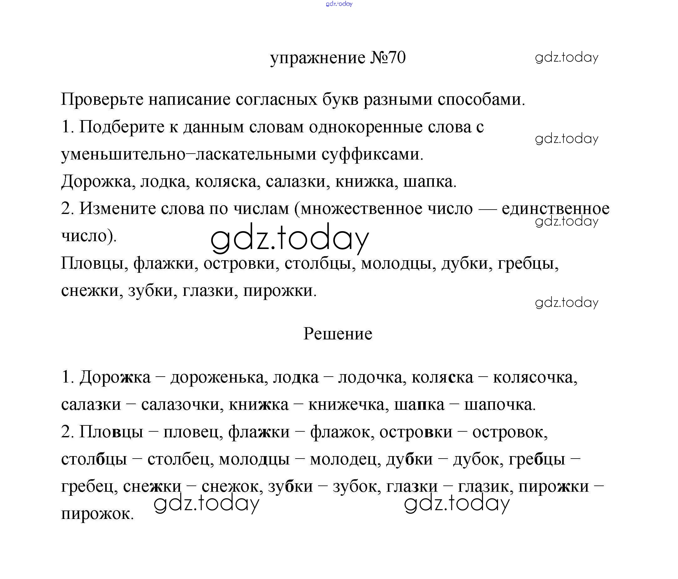 Ответы к Упражнения Решение. Часть 1 70 Учебнику по Русскому языку для 3 класса Климанова, Бабушкина Просвещение Перспектива 2019