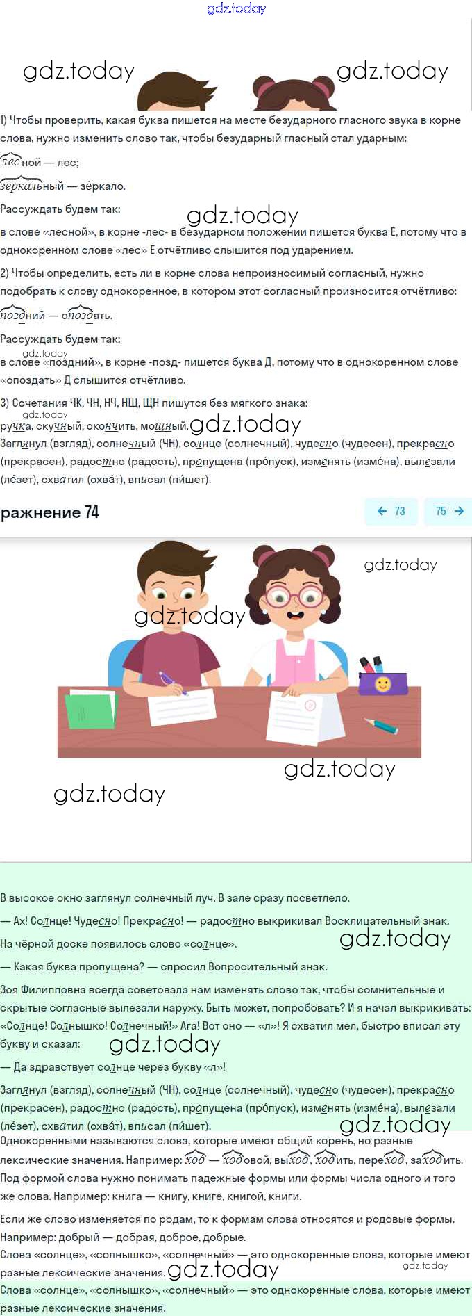 На страницах сайта gdz.today вы найдете учебный и вспомогательный материал, направленный на улучшения знаний школьной программы. ГДЗ - онлайн мир знаний Упражнения Решение. Часть 1 74 Учебнику по Русскому языку для 3 класса Климанова, Бабушкина Просвещение Перспектива 2019