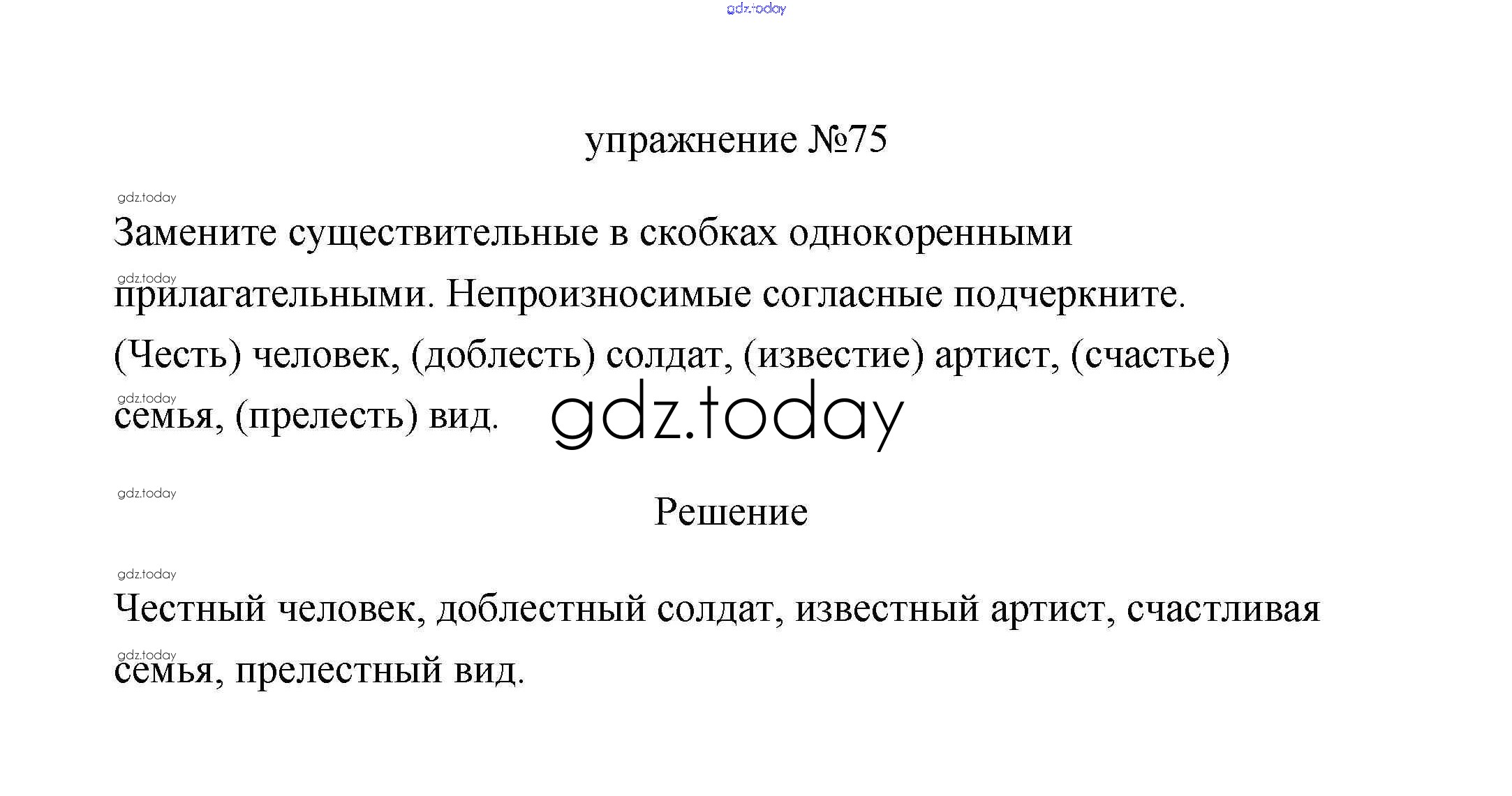 На страницах сайта gdz.today вы найдете учебный и вспомогательный материал, направленный на улучшения знаний школьной программы. ГДЗ - онлайн мир знаний Упражнения Решение. Часть 1 75 Учебнику по Русскому языку для 3 класса Климанова, Бабушкина Просвещение Перспектива 2019