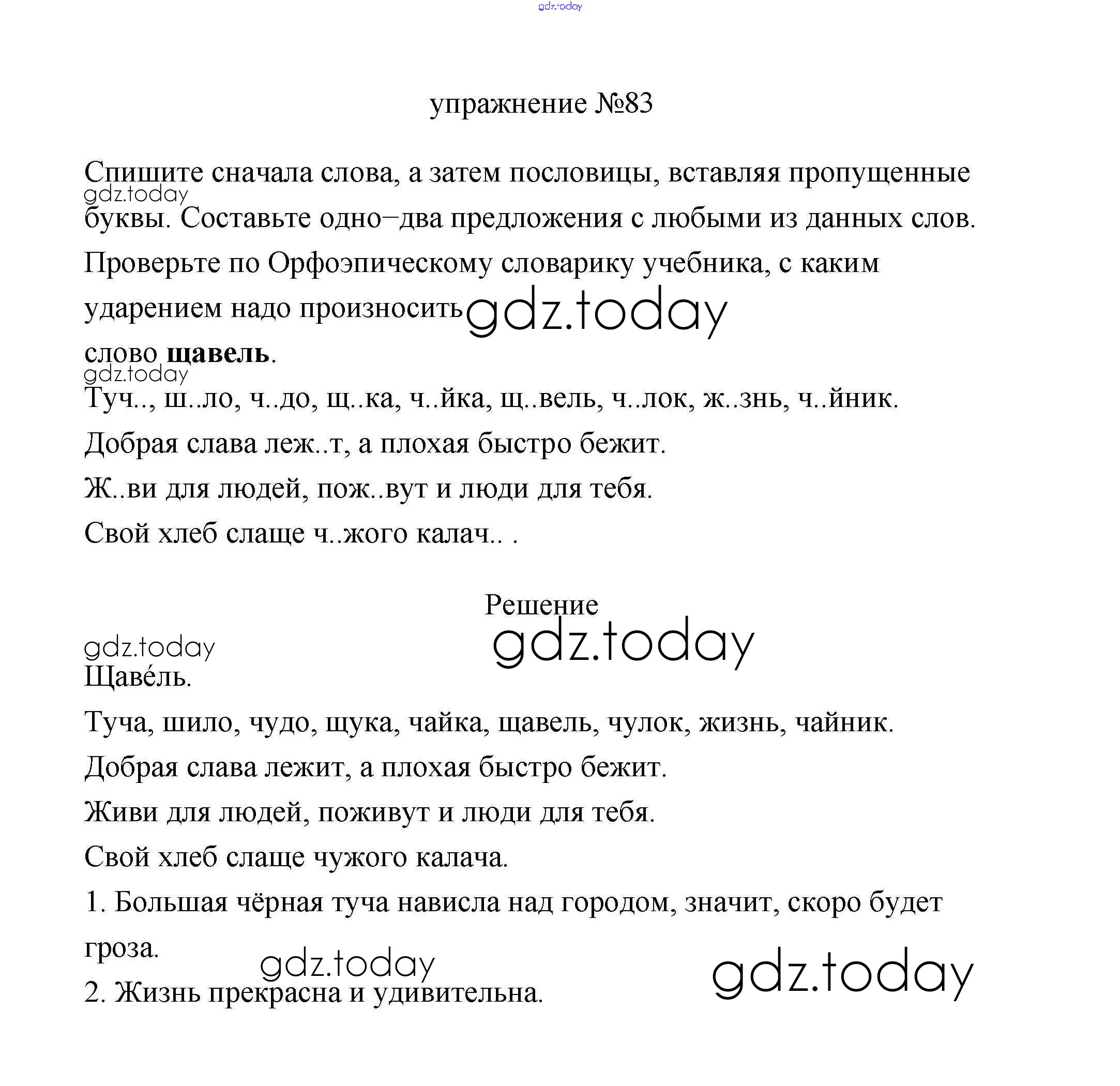 Ответы к Упражнения Решение. Часть 1 83 Учебнику по Русскому языку для 3 класса Климанова, Бабушкина Просвещение Перспектива 2019
