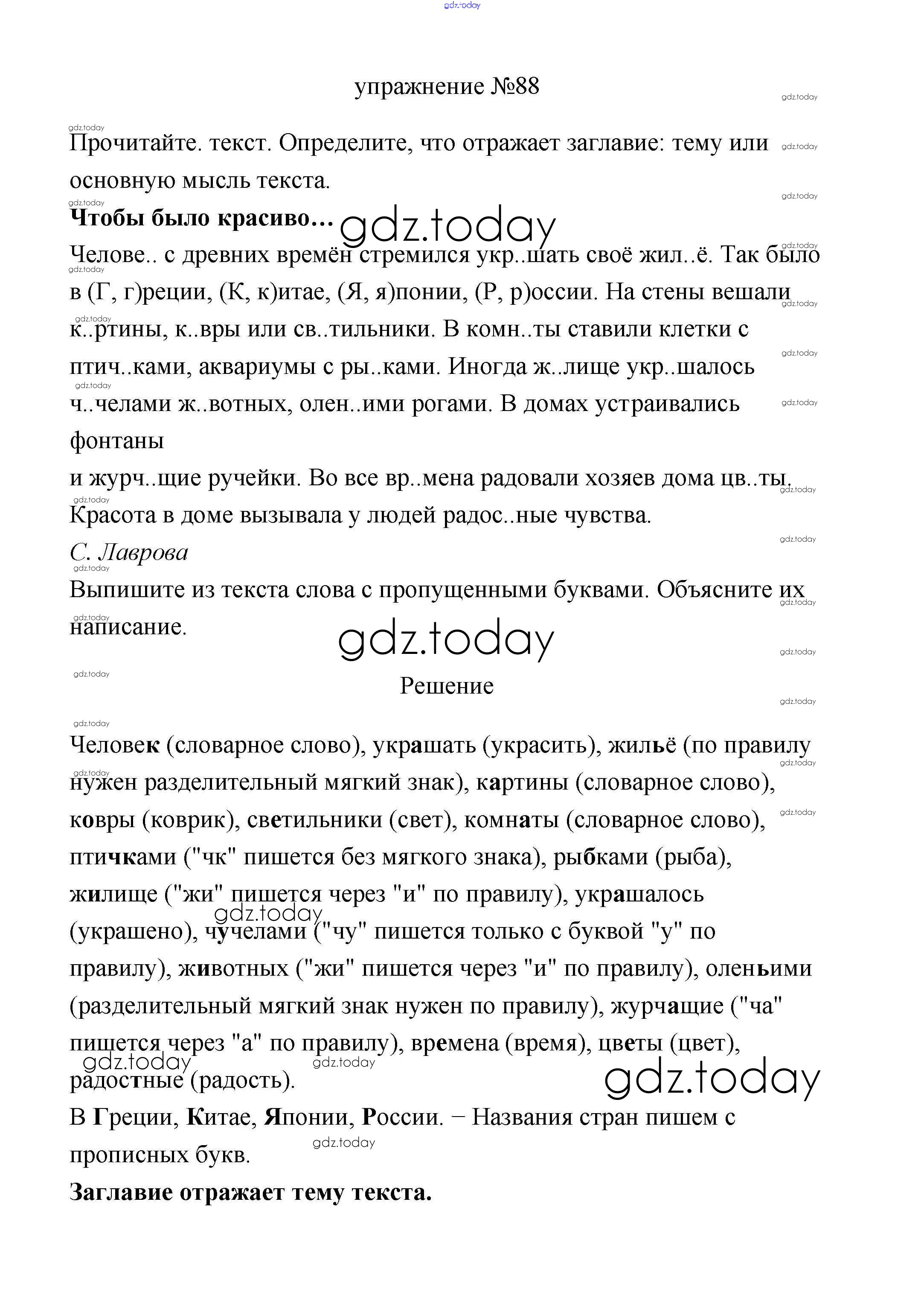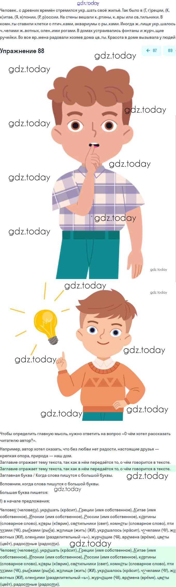 На страницах сайта gdz.today вы найдете учебный и вспомогательный материал, направленный на улучшения знаний школьной программы. ГДЗ - онлайн мир знаний Упражнения Решение. Часть 1 88 Учебнику по Русскому языку для 3 класса Климанова, Бабушкина Просвещение Перспектива 2019
