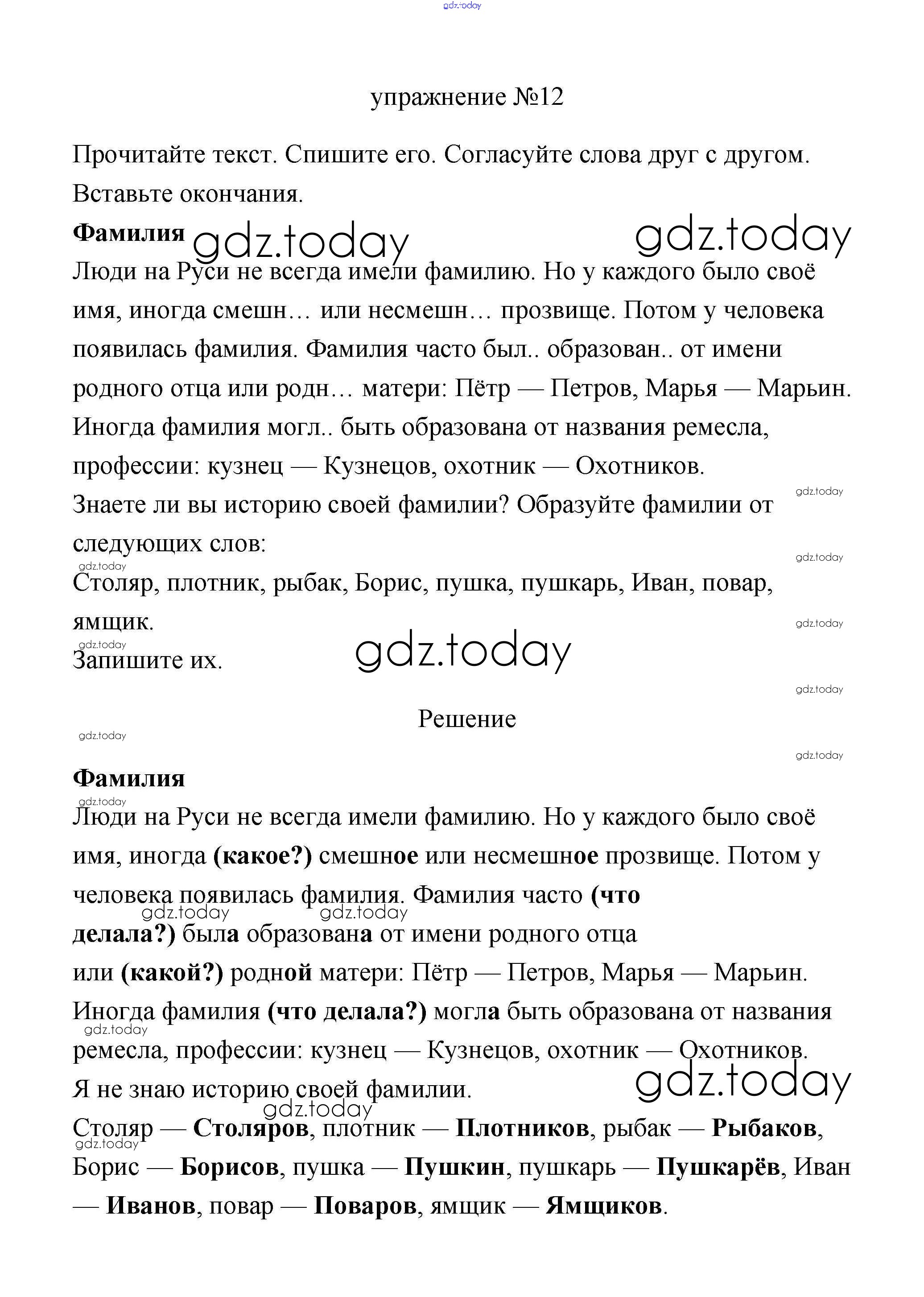 Ответы к Упражнения Решение. Часть 2 12 Учебнику по Русскому языку для 3 класса Климанова, Бабушкина Просвещение Перспектива 2019