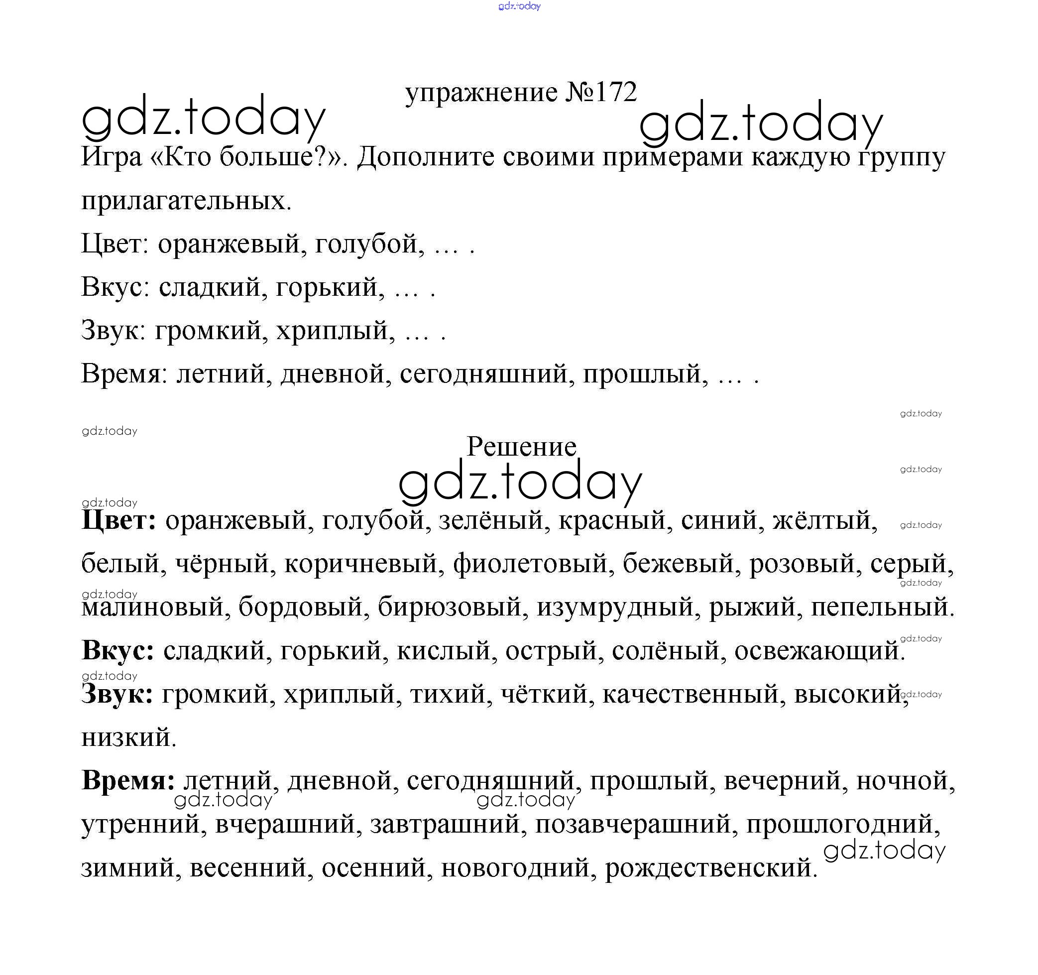На страницах сайта gdz.today вы найдете учебный и вспомогательный материал, направленный на улучшения знаний школьной программы. ГДЗ - онлайн мир знаний Упражнения Решение. Часть 2 172 Учебнику по Русскому языку для 3 класса Климанова, Бабушкина Просвещение Перспектива 2019