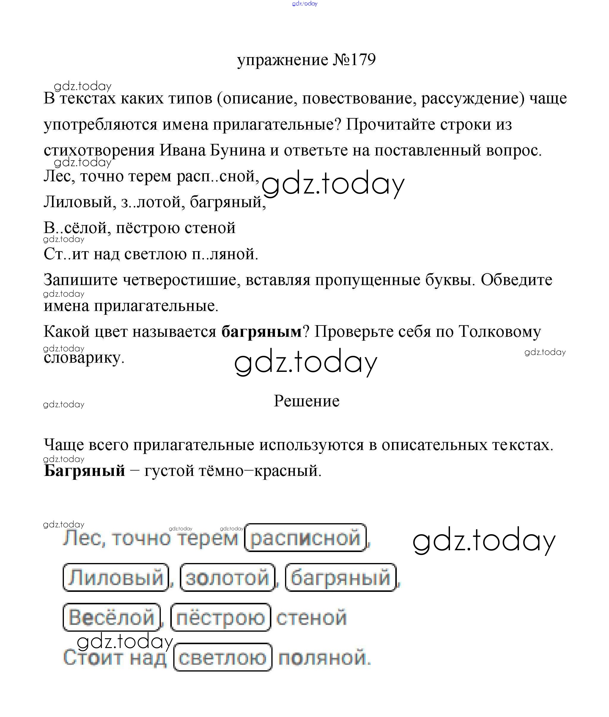 На страницах сайта gdz.today вы найдете учебный и вспомогательный материал, направленный на улучшения знаний школьной программы. ГДЗ - онлайн мир знаний Упражнения Решение. Часть 2 179 Учебнику по Русскому языку для 3 класса Климанова, Бабушкина Просвещение Перспектива 2019