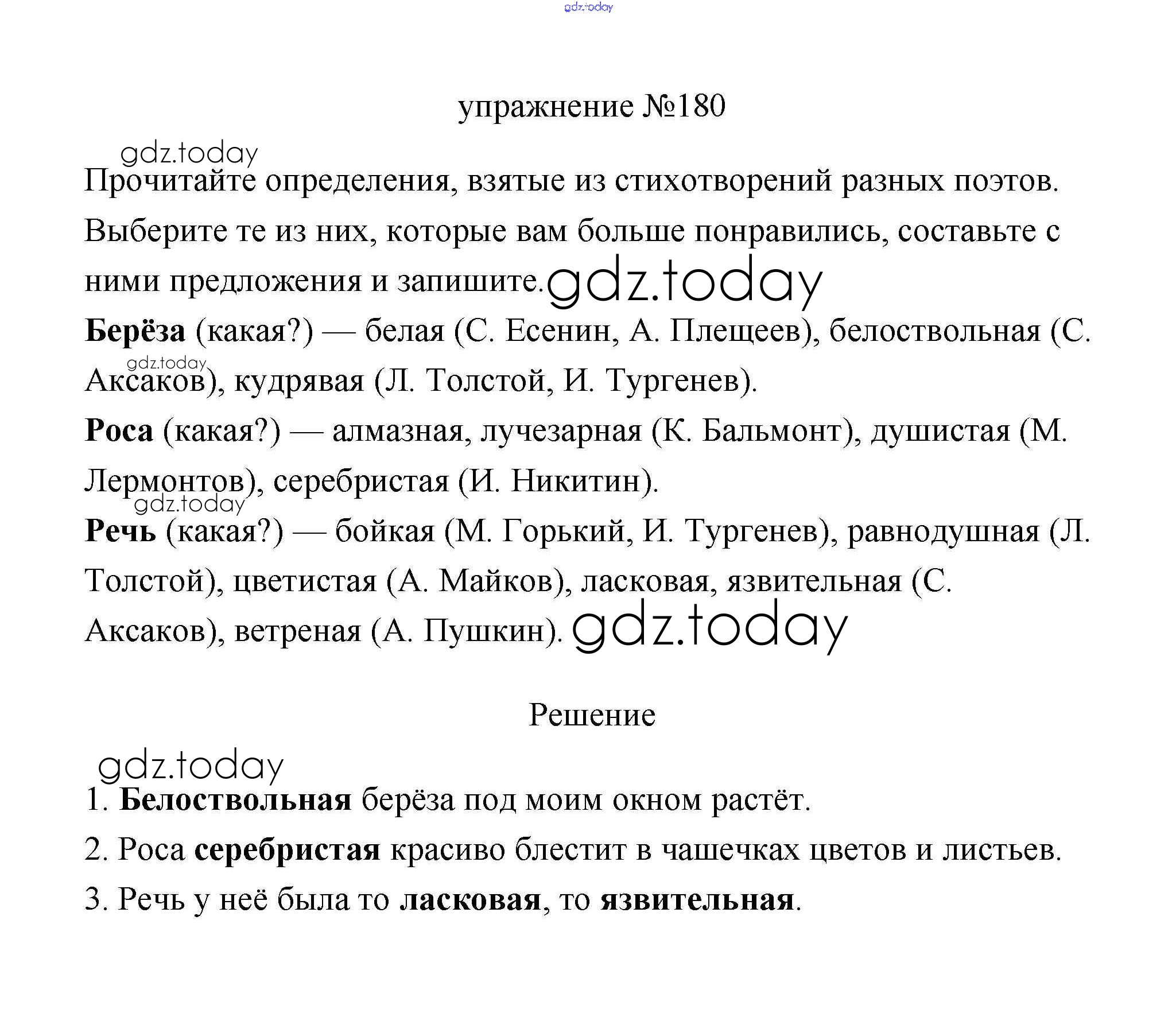 На страницах сайта gdz.today вы найдете учебный и вспомогательный материал, направленный на улучшения знаний школьной программы. ГДЗ - онлайн мир знаний Упражнения Решение. Часть 2 180 Учебнику по Русскому языку для 3 класса Климанова, Бабушкина Просвещение Перспектива 2019