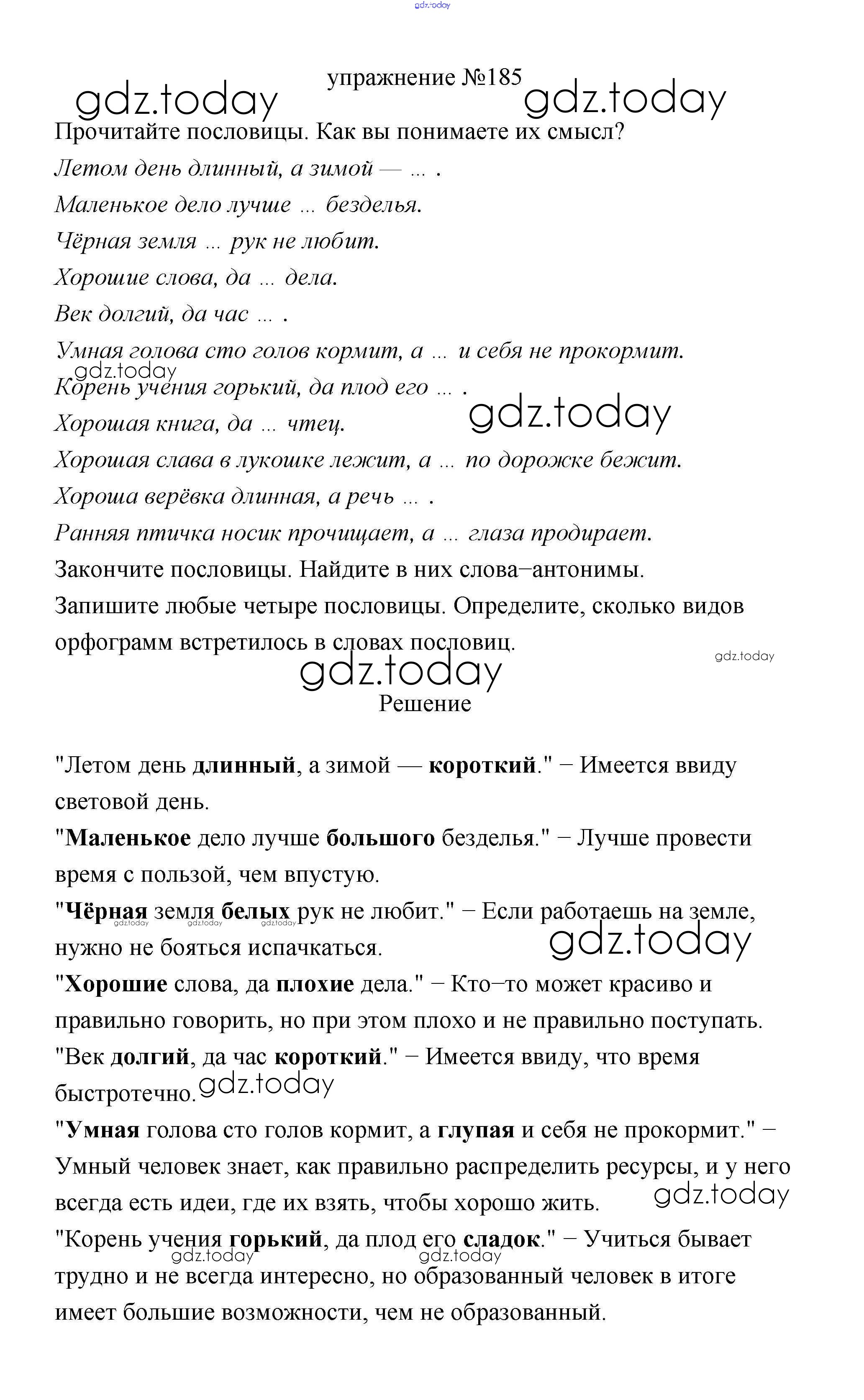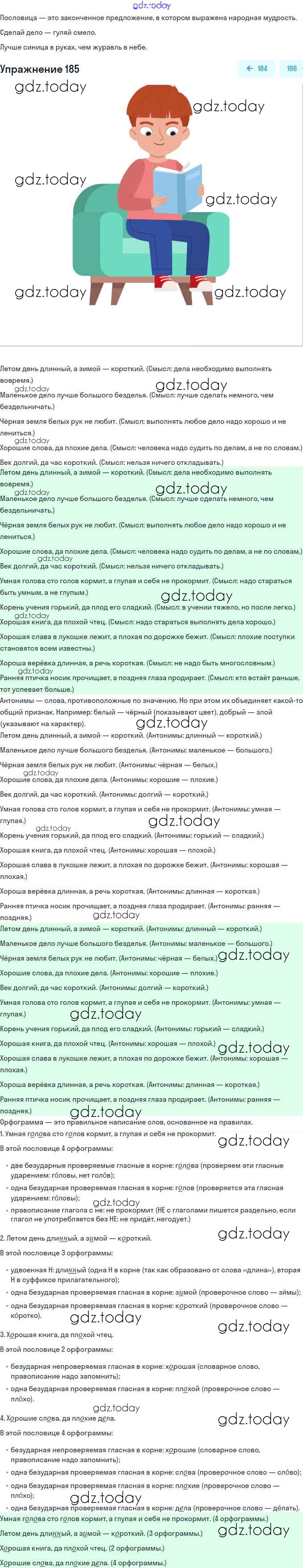 На страницах сайта gdz.today вы найдете учебный и вспомогательный материал, направленный на улучшения знаний школьной программы. ГДЗ - онлайн мир знаний Упражнения Решение. Часть 2 185 Учебнику по Русскому языку для 3 класса Климанова, Бабушкина Просвещение Перспектива 2019