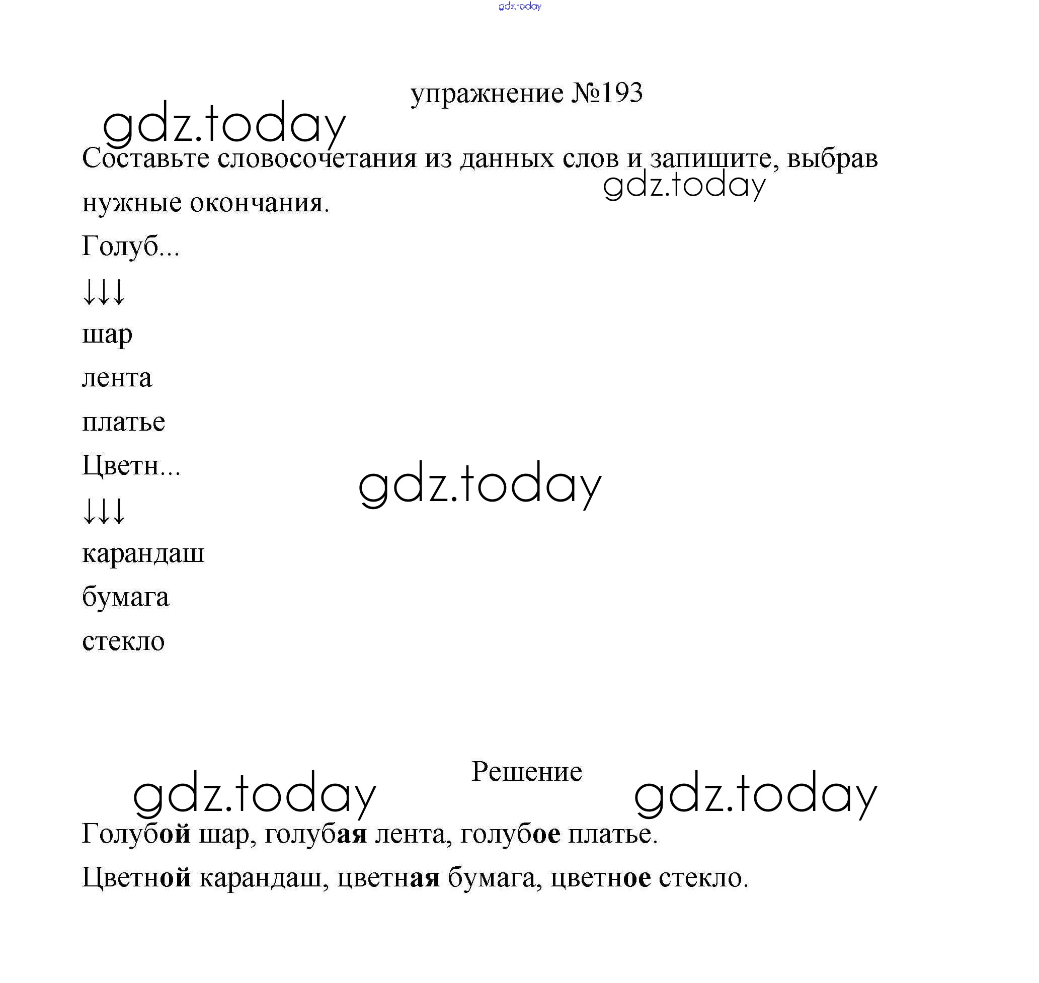 На страницах сайта gdz.today вы найдете учебный и вспомогательный материал, направленный на улучшения знаний школьной программы. ГДЗ - онлайн мир знаний Упражнения Решение. Часть 2 193 Учебнику по Русскому языку для 3 класса Климанова, Бабушкина Просвещение Перспектива 2019