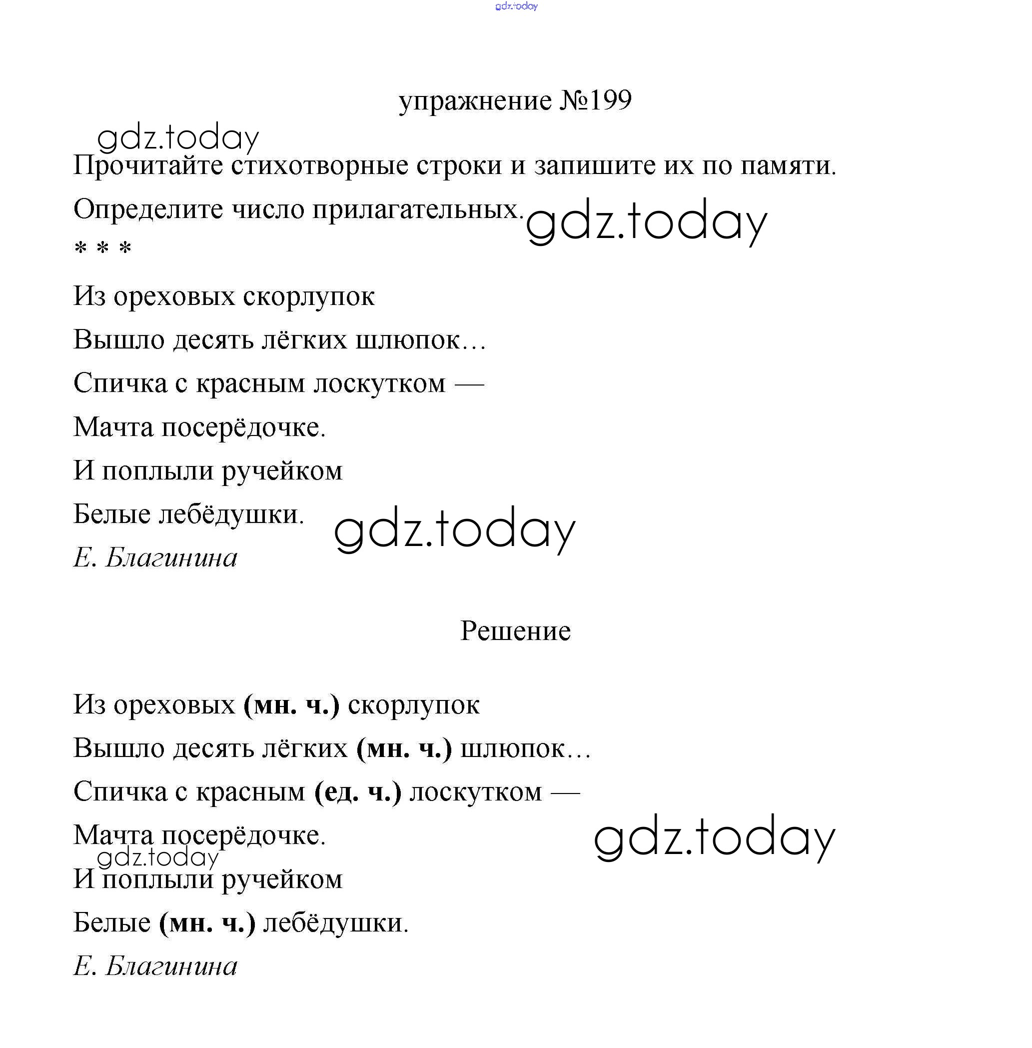 На страницах сайта gdz.today вы найдете учебный и вспомогательный материал, направленный на улучшения знаний школьной программы. ГДЗ - онлайн мир знаний Упражнения Решение. Часть 2 199 Учебнику по Русскому языку для 3 класса Климанова, Бабушкина Просвещение Перспектива 2019