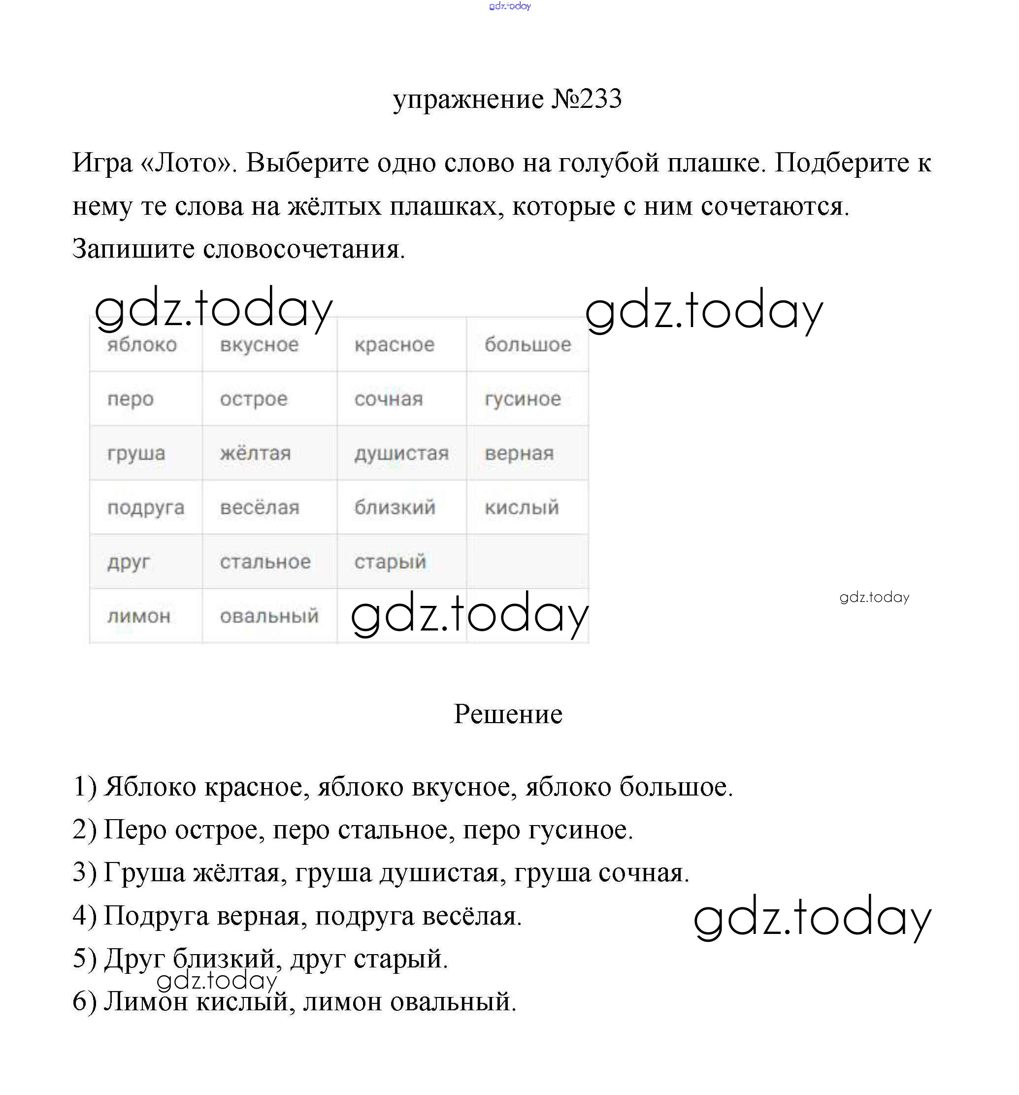 На страницах сайта gdz.today вы найдете учебный и вспомогательный материал, направленный на улучшения знаний школьной программы. ГДЗ - онлайн мир знаний Упражнения Решение. Часть 2 233 Учебнику по Русскому языку для 3 класса Климанова, Бабушкина Просвещение Перспектива 2019