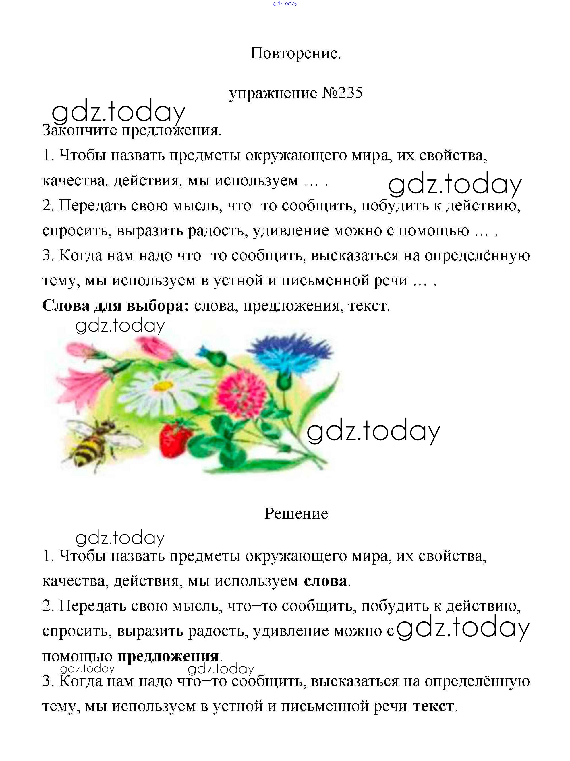 На страницах сайта gdz.today вы найдете учебный и вспомогательный материал, направленный на улучшения знаний школьной программы. ГДЗ - онлайн мир знаний Упражнения Решение. Часть 2 235 Учебнику по Русскому языку для 3 класса Климанова, Бабушкина Просвещение Перспектива 2019