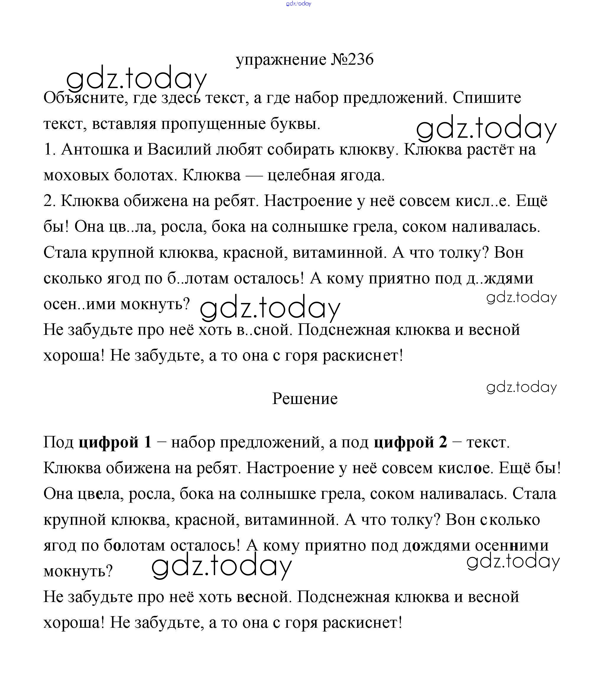 На страницах сайта gdz.today вы найдете учебный и вспомогательный материал, направленный на улучшения знаний школьной программы. ГДЗ - онлайн мир знаний Упражнения Решение. Часть 2 236 Учебнику по Русскому языку для 3 класса Климанова, Бабушкина Просвещение Перспектива 2019