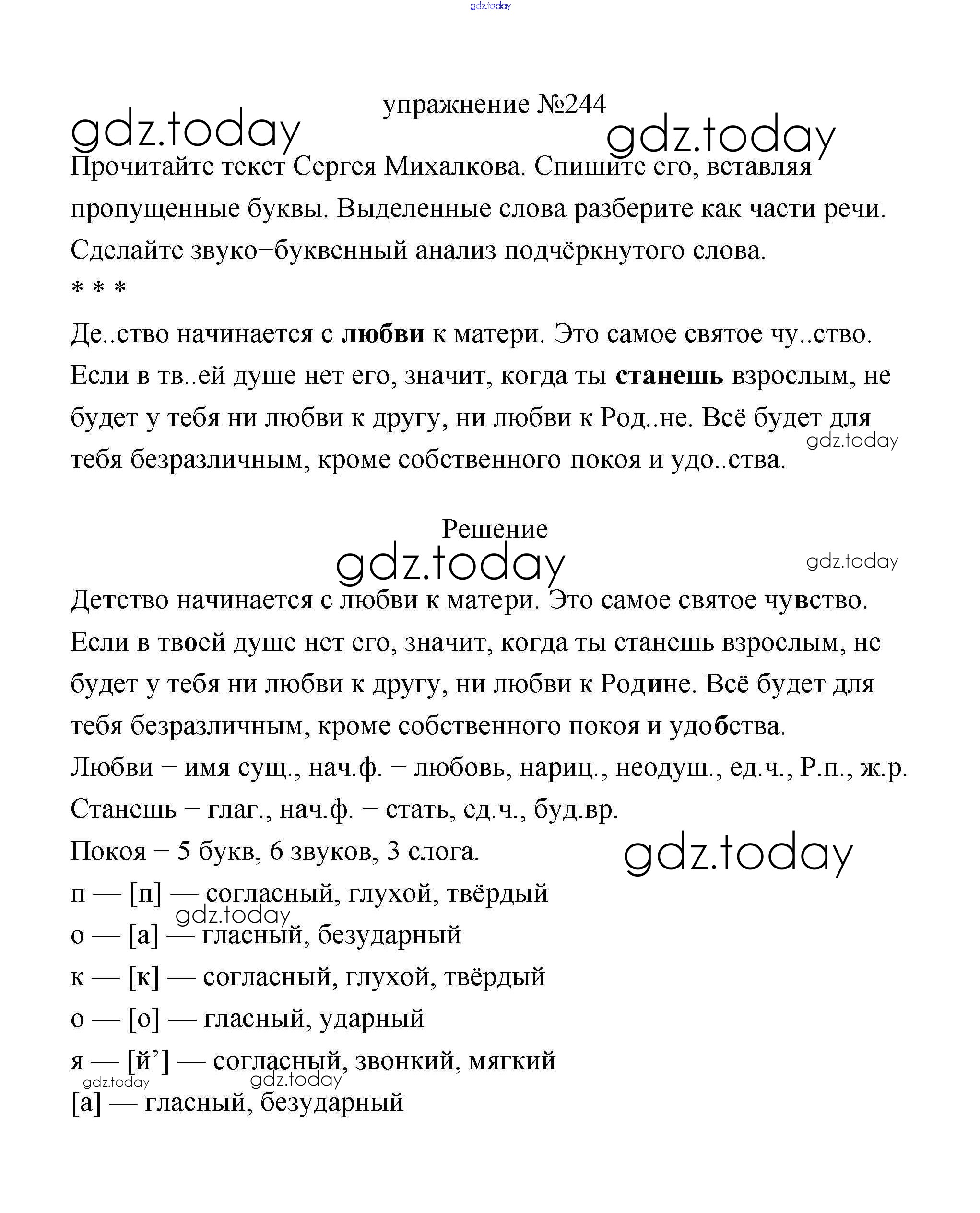 На страницах сайта gdz.today вы найдете учебный и вспомогательный материал, направленный на улучшения знаний школьной программы. ГДЗ - онлайн мир знаний Упражнения Решение. Часть 2 244 Учебнику по Русскому языку для 3 класса Климанова, Бабушкина Просвещение Перспектива 2019