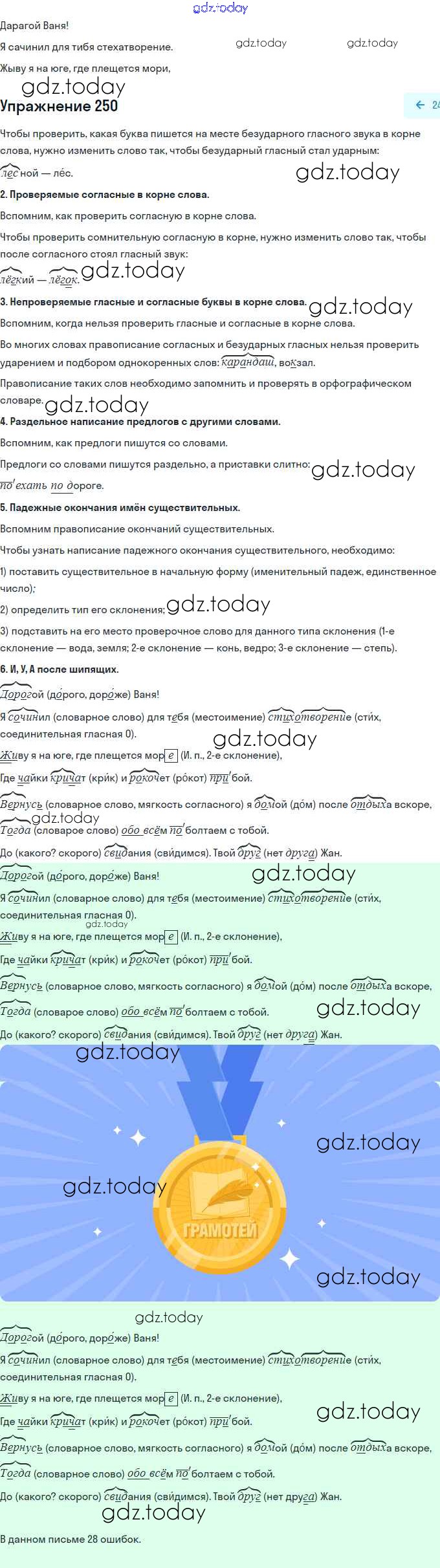 На страницах сайта gdz.today вы найдете учебный и вспомогательный материал, направленный на улучшения знаний школьной программы. ГДЗ - онлайн мир знаний Упражнения Решение. Часть 2 250 Учебнику по Русскому языку для 3 класса Климанова, Бабушкина Просвещение Перспектива 2019