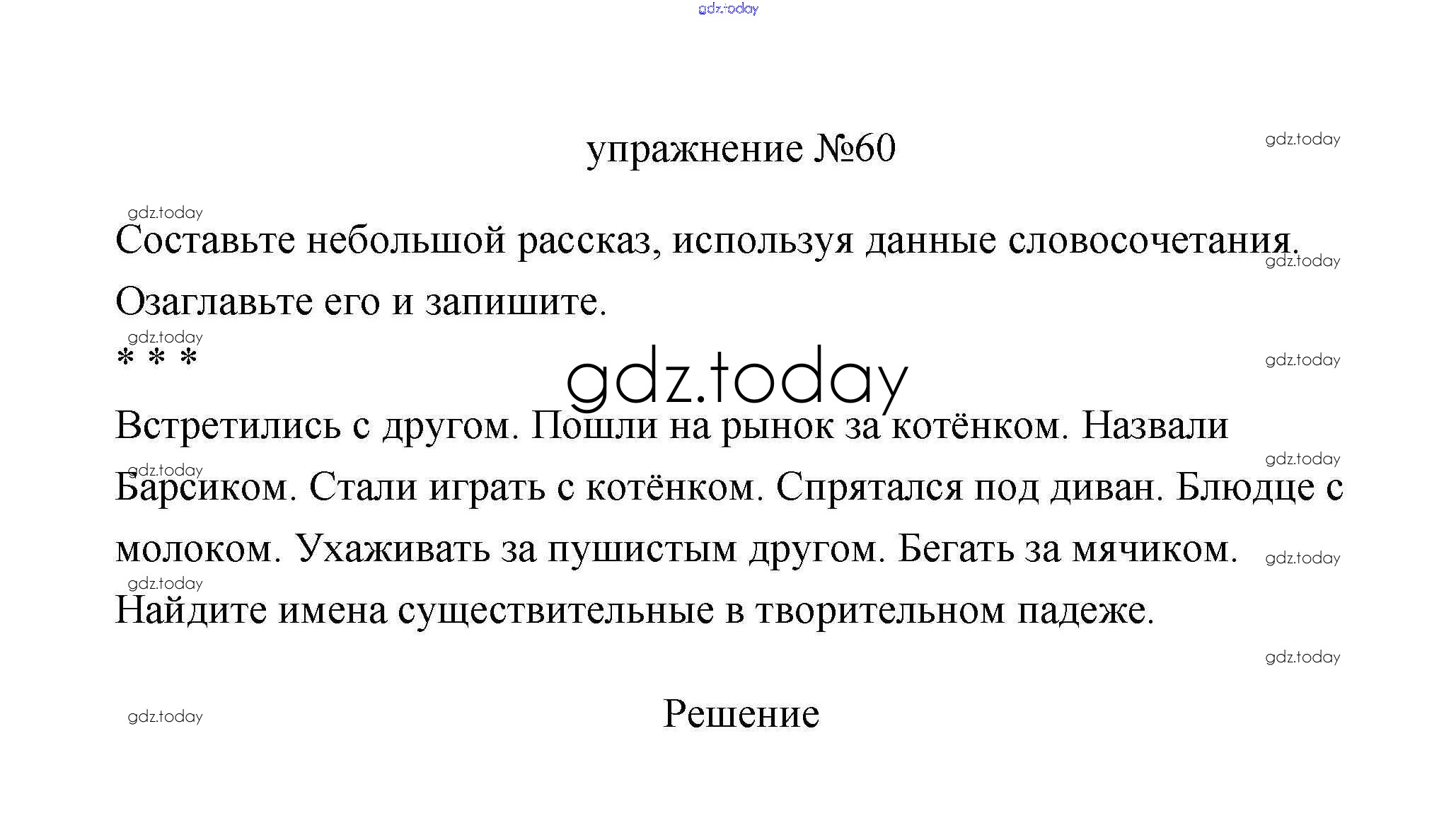 На страницах сайта gdz.today вы найдете учебный и вспомогательный материал, направленный на улучшения знаний школьной программы. ГДЗ - онлайн мир знаний Упражнения Решение. Часть 2 60 Учебнику по Русскому языку для 3 класса Климанова, Бабушкина Просвещение Перспектива 2019