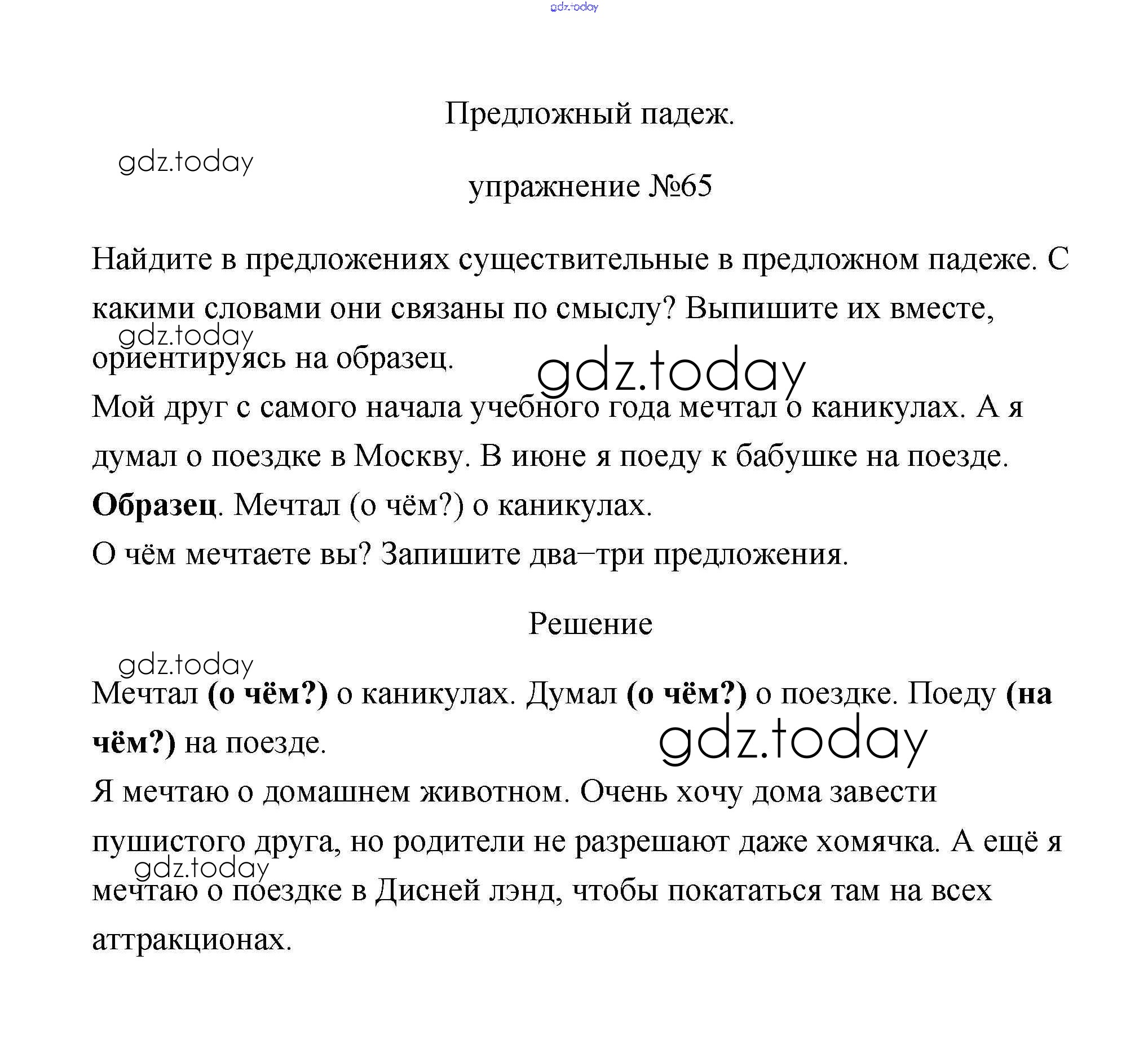 На страницах сайта gdz.today вы найдете учебный и вспомогательный материал, направленный на улучшения знаний школьной программы. ГДЗ - онлайн мир знаний Упражнения Решение. Часть 2 65 Учебнику по Русскому языку для 3 класса Климанова, Бабушкина Просвещение Перспектива 2019