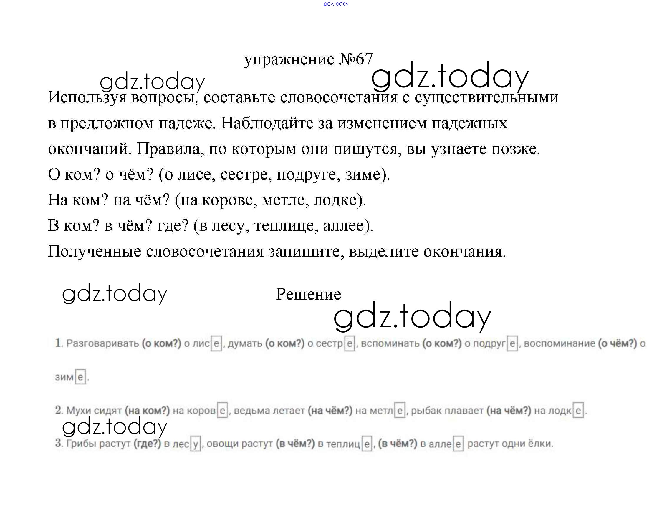 На страницах сайта gdz.today вы найдете учебный и вспомогательный материал, направленный на улучшения знаний школьной программы. ГДЗ - онлайн мир знаний Упражнения Решение. Часть 2 67 Учебнику по Русскому языку для 3 класса Климанова, Бабушкина Просвещение Перспектива 2019