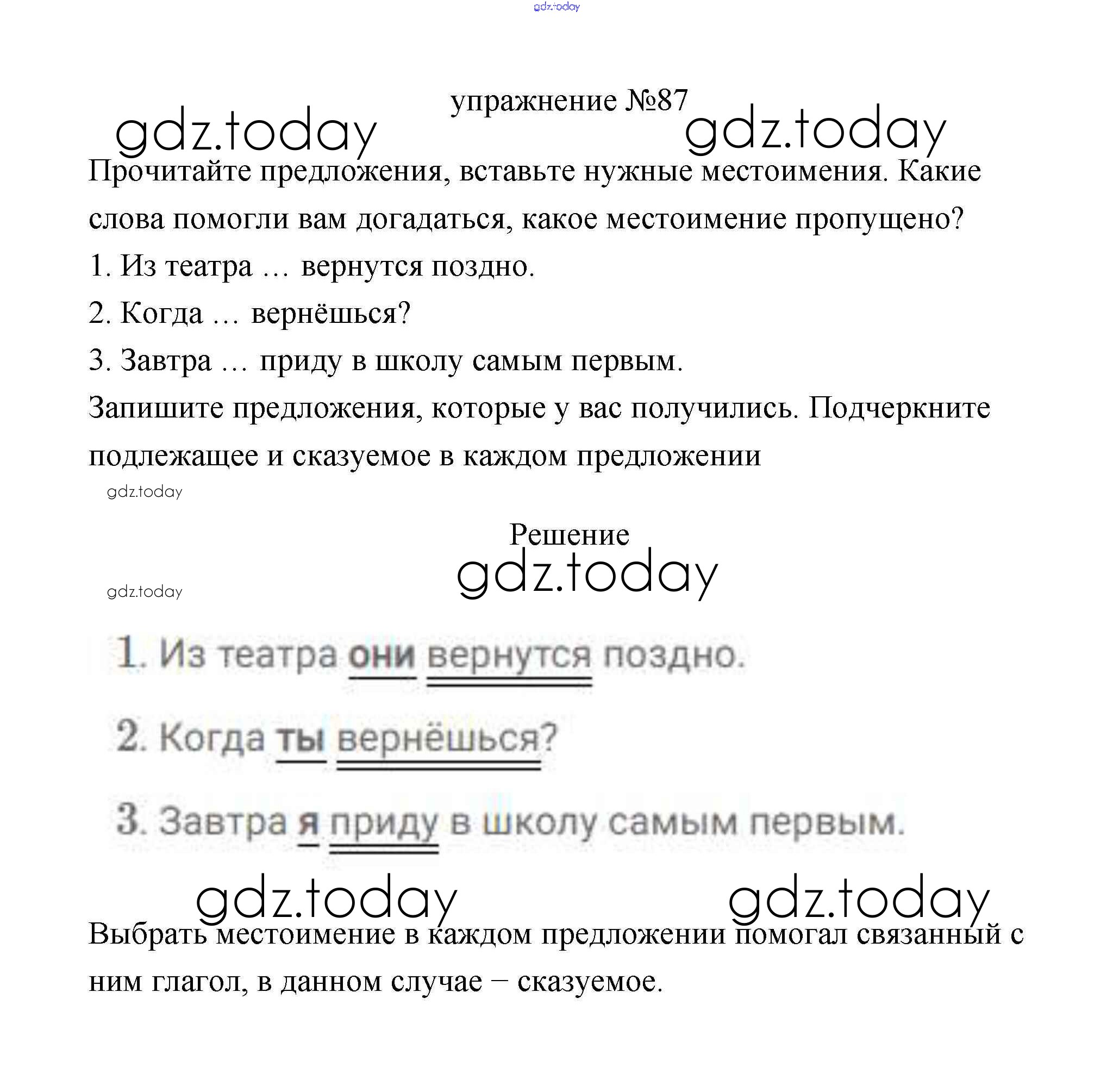 На страницах сайта gdz.today вы найдете учебный и вспомогательный материал, направленный на улучшения знаний школьной программы. ГДЗ - онлайн мир знаний Упражнения Решение. Часть 2 87 Учебнику по Русскому языку для 3 класса Климанова, Бабушкина Просвещение Перспектива 2019