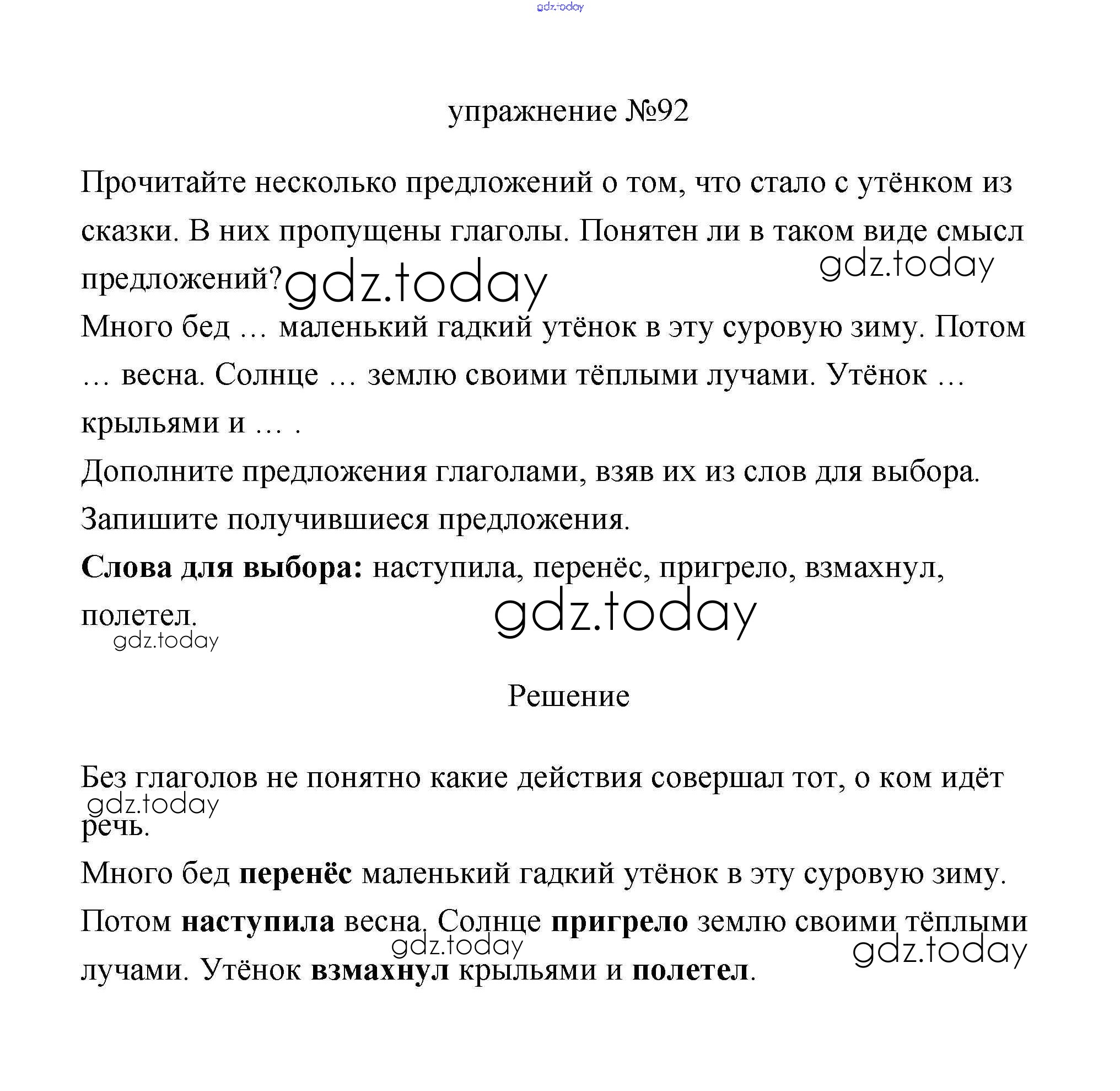 На страницах сайта gdz.today вы найдете учебный и вспомогательный материал, направленный на улучшения знаний школьной программы. ГДЗ - онлайн мир знаний Упражнения Решение. Часть 2 92 Учебнику по Русскому языку для 3 класса Климанова, Бабушкина Просвещение Перспектива 2019