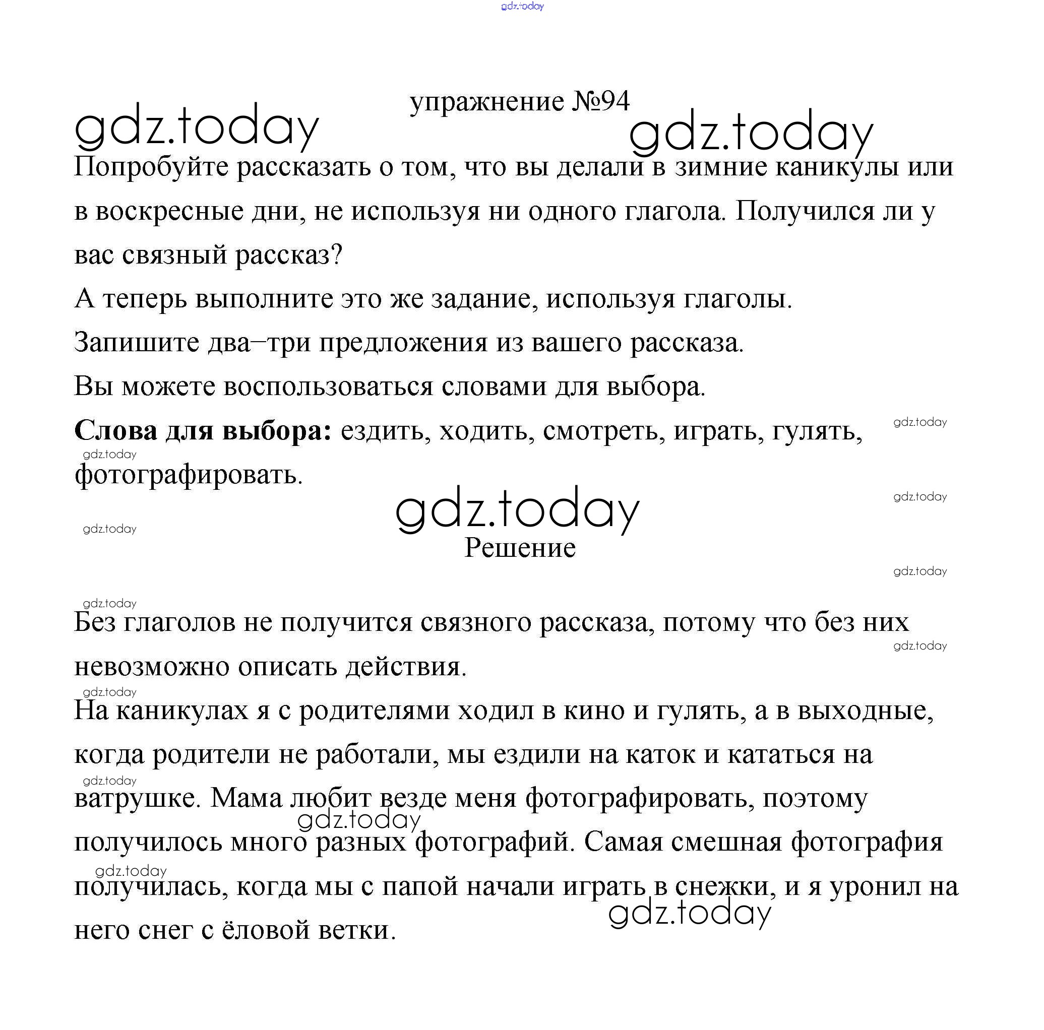 На страницах сайта gdz.today вы найдете учебный и вспомогательный материал, направленный на улучшения знаний школьной программы. ГДЗ - онлайн мир знаний Упражнения Решение. Часть 2 94 Учебнику по Русскому языку для 3 класса Климанова, Бабушкина Просвещение Перспектива 2019