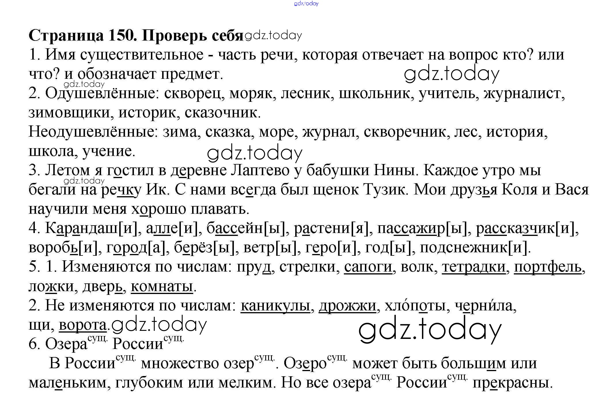 На страницах сайта gdz.today вы найдете учебный и вспомогательный материал, направленный на улучшения знаний школьной программы. ГДЗ - онлайн мир знаний Проверь себя (страницы) Часть 1. Решение к упражнениям Страница 150 Учебнику по Русскому языку для 3 класса Климанова, Бабушкина Просвещение Перспектива 2014