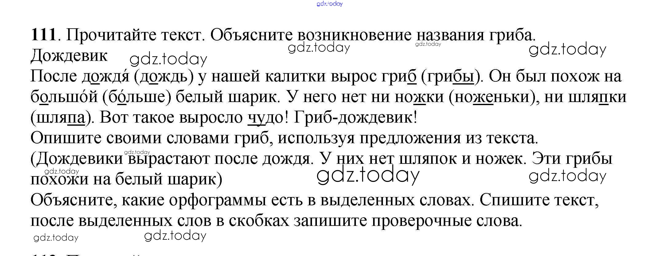На страницах сайта gdz.today вы найдете учебный и вспомогательный материал, направленный на улучшения знаний школьной программы. ГДЗ - онлайн мир знаний Часть 1. Решение к упражнениям 111 Учебнику по Русскому языку для 3 класса Климанова, Бабушкина Просвещение Перспектива 2014