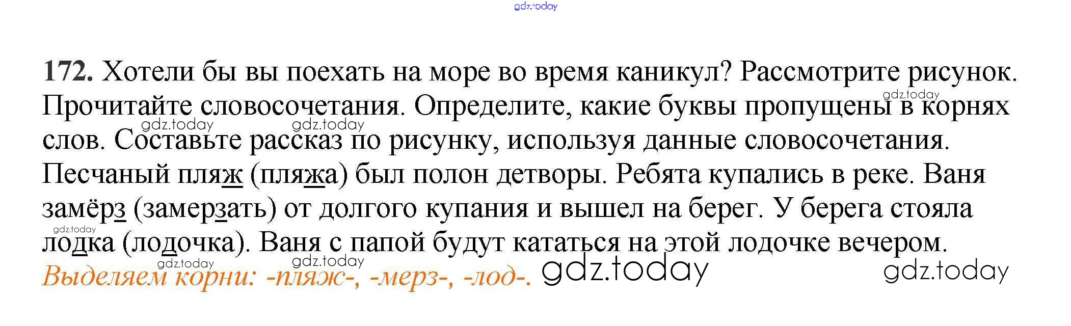 Ответы к Часть 1. Решение к упражнениям 172 Учебнику по Русскому языку для 3 класса Климанова, Бабушкина Просвещение Перспектива 2014