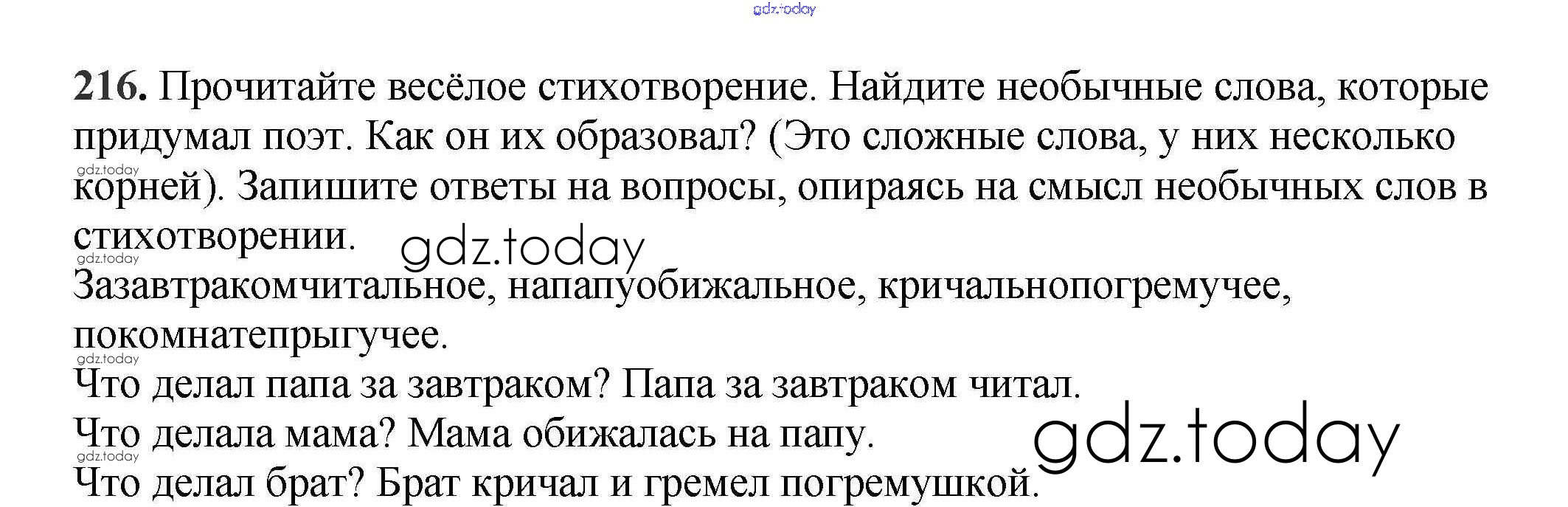 На страницах сайта gdz.today вы найдете учебный и вспомогательный материал, направленный на улучшения знаний школьной программы. ГДЗ - онлайн мир знаний Часть 1. Решение к упражнениям 216 Учебнику по Русскому языку для 3 класса Климанова, Бабушкина Просвещение Перспектива 2014