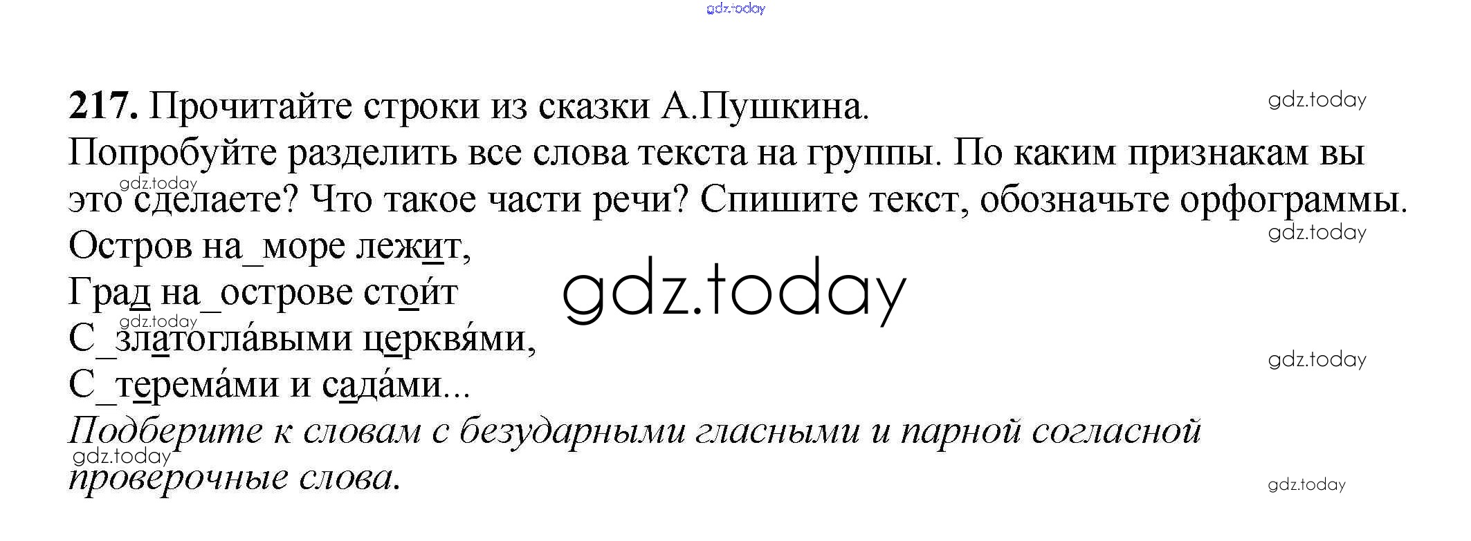 Ответы к Часть 1. Решение к упражнениям 217 Учебнику по Русскому языку для 3 класса Климанова, Бабушкина Просвещение Перспектива 2014