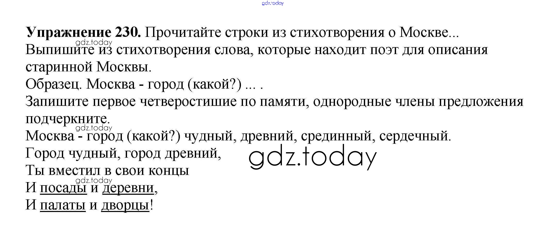 На страницах сайта gdz.today вы найдете учебный и вспомогательный материал, направленный на улучшения знаний школьной программы. ГДЗ - онлайн мир знаний Часть 1. Решение к упражнениям 230 Учебнику по Русскому языку для 3 класса Климанова, Бабушкина Просвещение Перспектива 2014