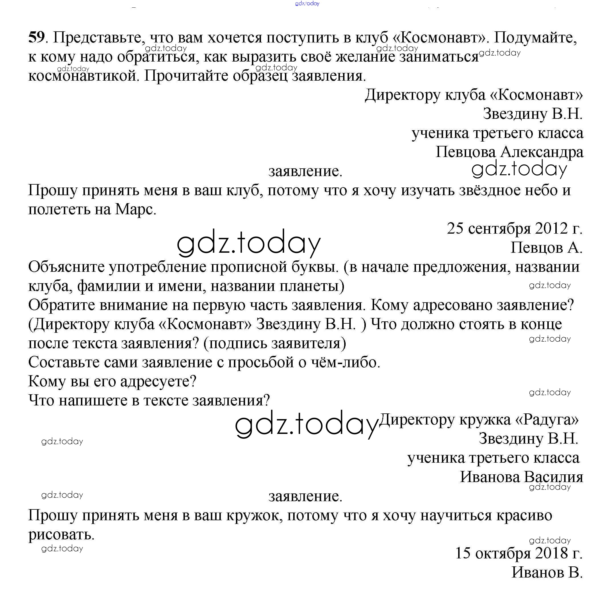 На страницах сайта gdz.today вы найдете учебный и вспомогательный материал, направленный на улучшения знаний школьной программы. ГДЗ - онлайн мир знаний Часть 1. Решение к упражнениям 59 Учебнику по Русскому языку для 3 класса Климанова, Бабушкина Просвещение Перспектива 2014