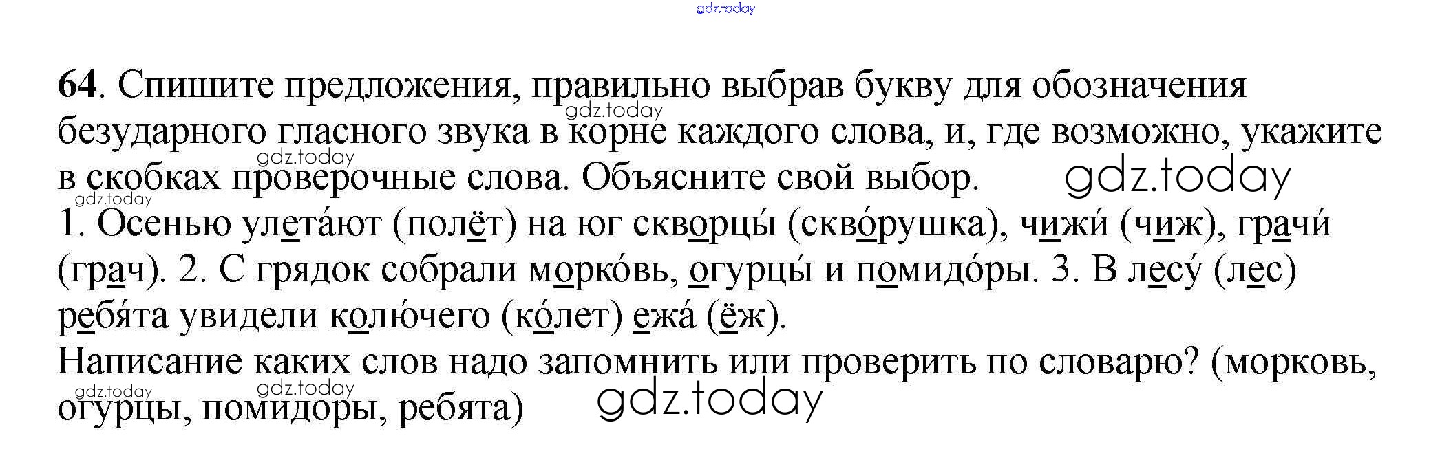 Ответы к Часть 1. Решение к упражнениям 64 Учебнику по Русскому языку для 3 класса Климанова, Бабушкина Просвещение Перспектива 2014