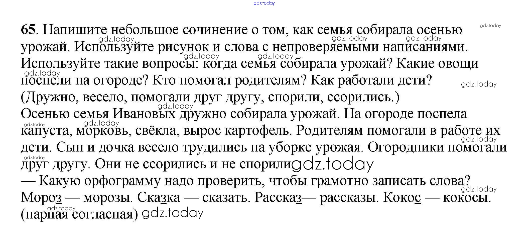 На страницах сайта gdz.today вы найдете учебный и вспомогательный материал, направленный на улучшения знаний школьной программы. ГДЗ - онлайн мир знаний Часть 1. Решение к упражнениям 65 Учебнику по Русскому языку для 3 класса Климанова, Бабушкина Просвещение Перспектива 2014