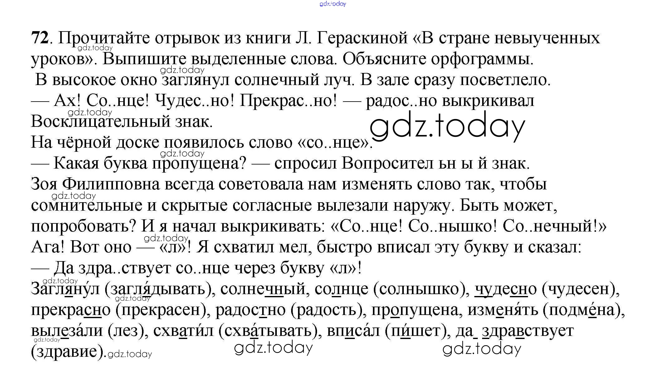 Ответы к Часть 1. Решение к упражнениям 72 Учебнику по Русскому языку для 3 класса Климанова, Бабушкина Просвещение Перспектива 2014