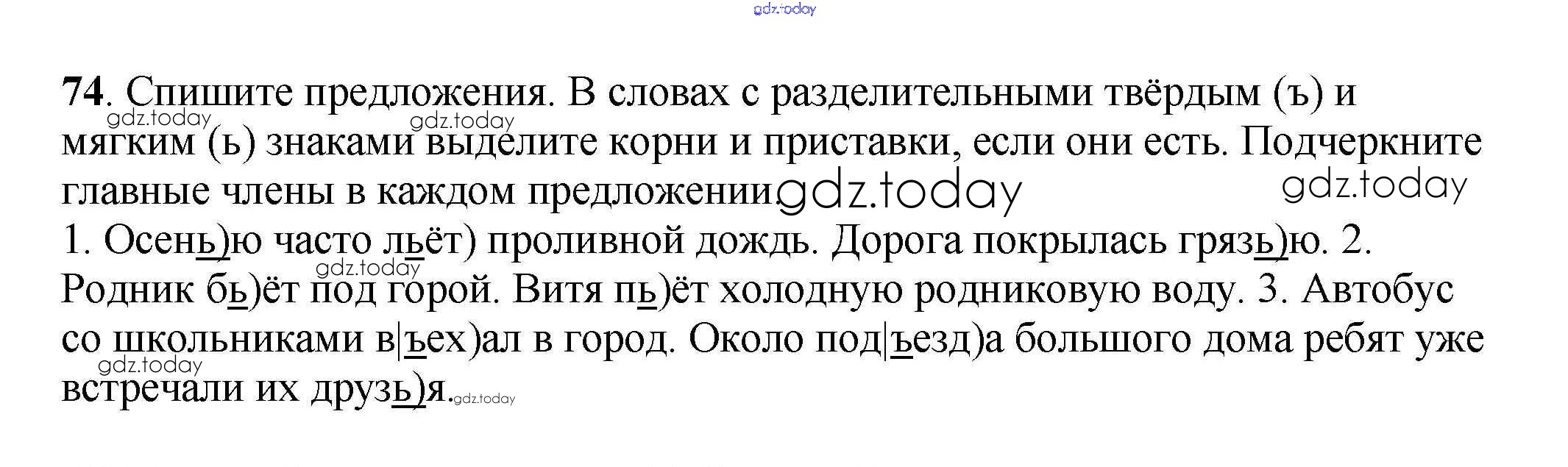 Ответы к Часть 1. Решение к упражнениям 74 Учебнику по Русскому языку для 3 класса Климанова, Бабушкина Просвещение Перспектива 2014