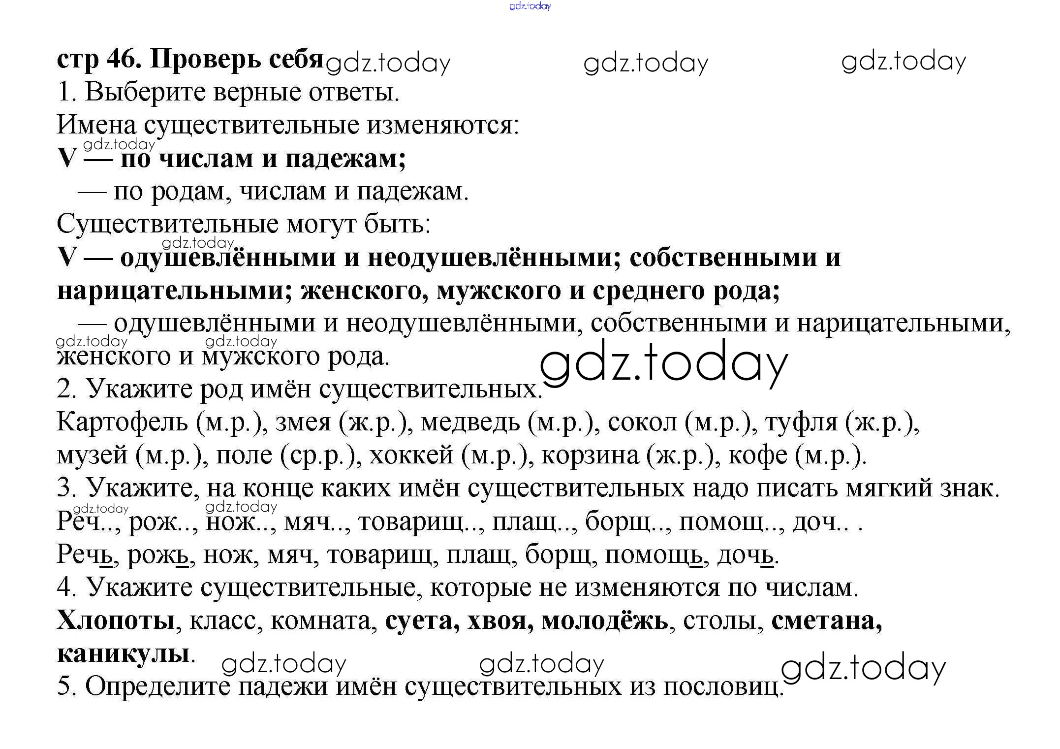 На страницах сайта gdz.today вы найдете учебный и вспомогательный материал, направленный на улучшения знаний школьной программы. ГДЗ - онлайн мир знаний Проверь себя (страницы) Часть 2. Решение к упражнениям Страница 46 Учебнику по Русскому языку для 3 класса Климанова, Бабушкина Просвещение Перспектива 2014
