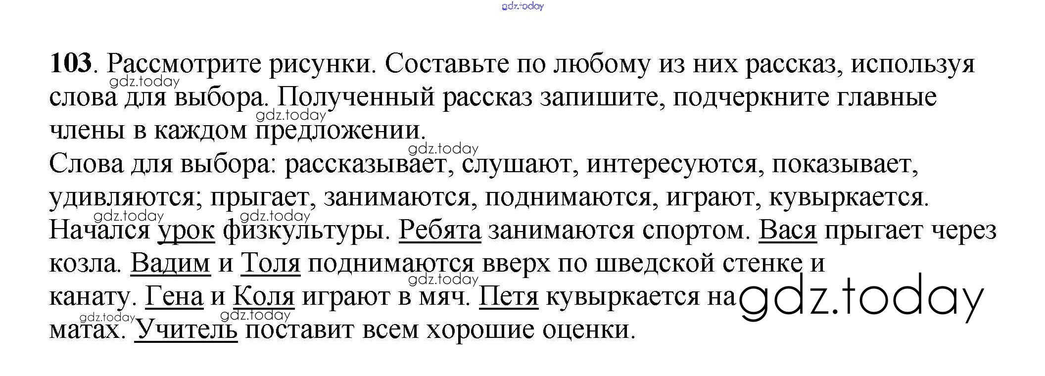 На страницах сайта gdz.today вы найдете учебный и вспомогательный материал, направленный на улучшения знаний школьной программы. ГДЗ - онлайн мир знаний Часть 2. Решение к упражнениям 103 Учебнику по Русскому языку для 3 класса Климанова, Бабушкина Просвещение Перспектива 2014