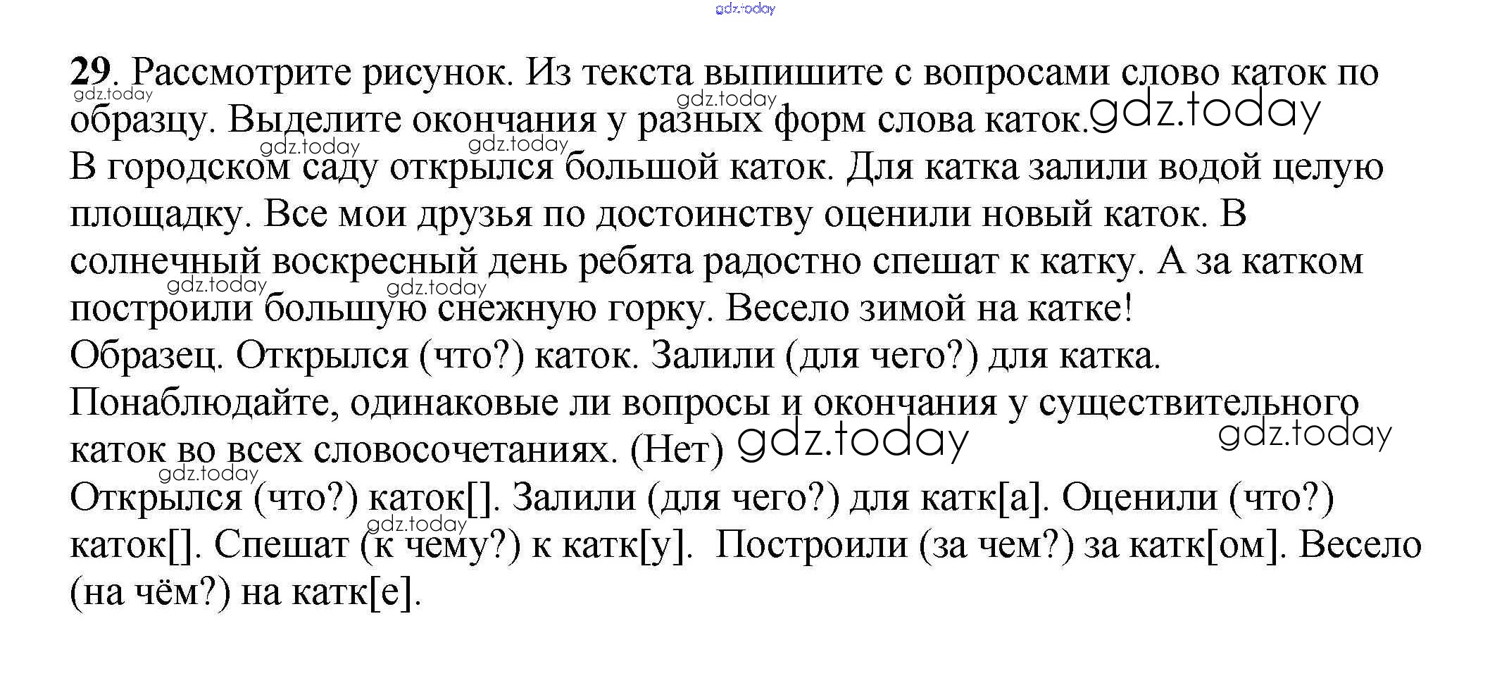 На страницах сайта gdz.today вы найдете учебный и вспомогательный материал, направленный на улучшения знаний школьной программы. ГДЗ - онлайн мир знаний Часть 2. Решение к упражнениям 29 Учебнику по Русскому языку для 3 класса Климанова, Бабушкина Просвещение Перспектива 2014