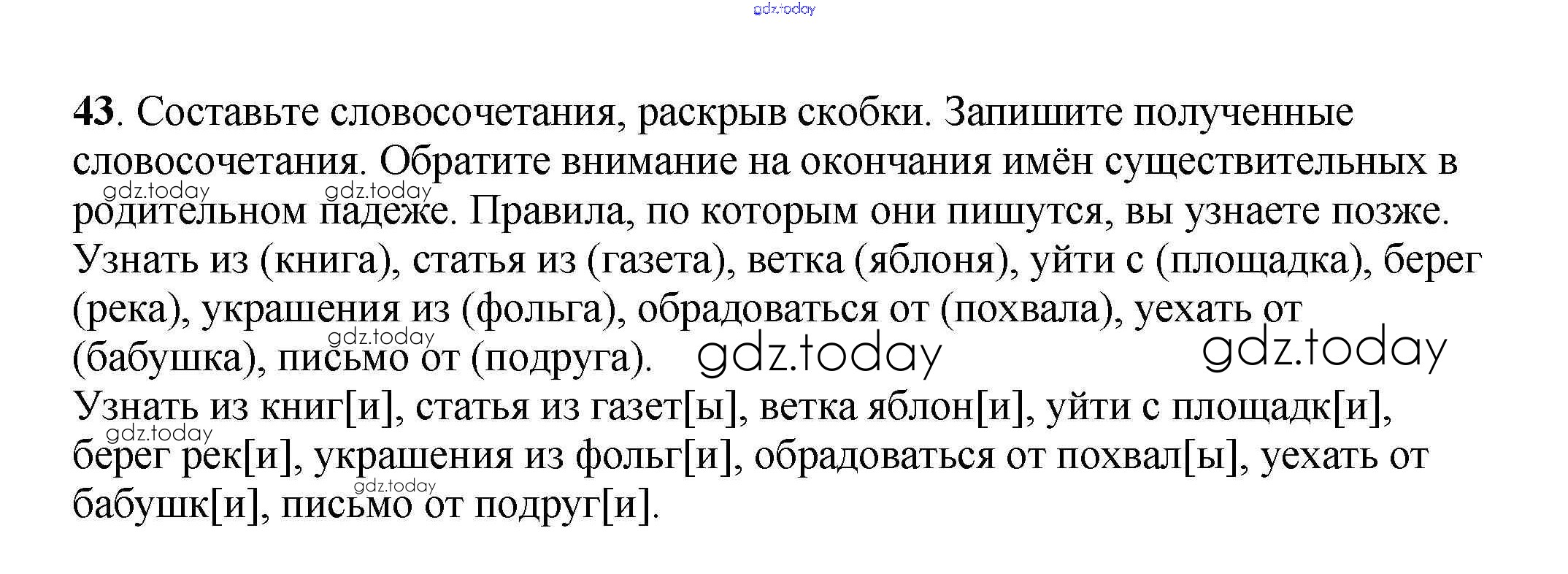 Ответы к Часть 2. Решение к упражнениям 43 Учебнику по Русскому языку для 3 класса Климанова, Бабушкина Просвещение Перспектива 2014