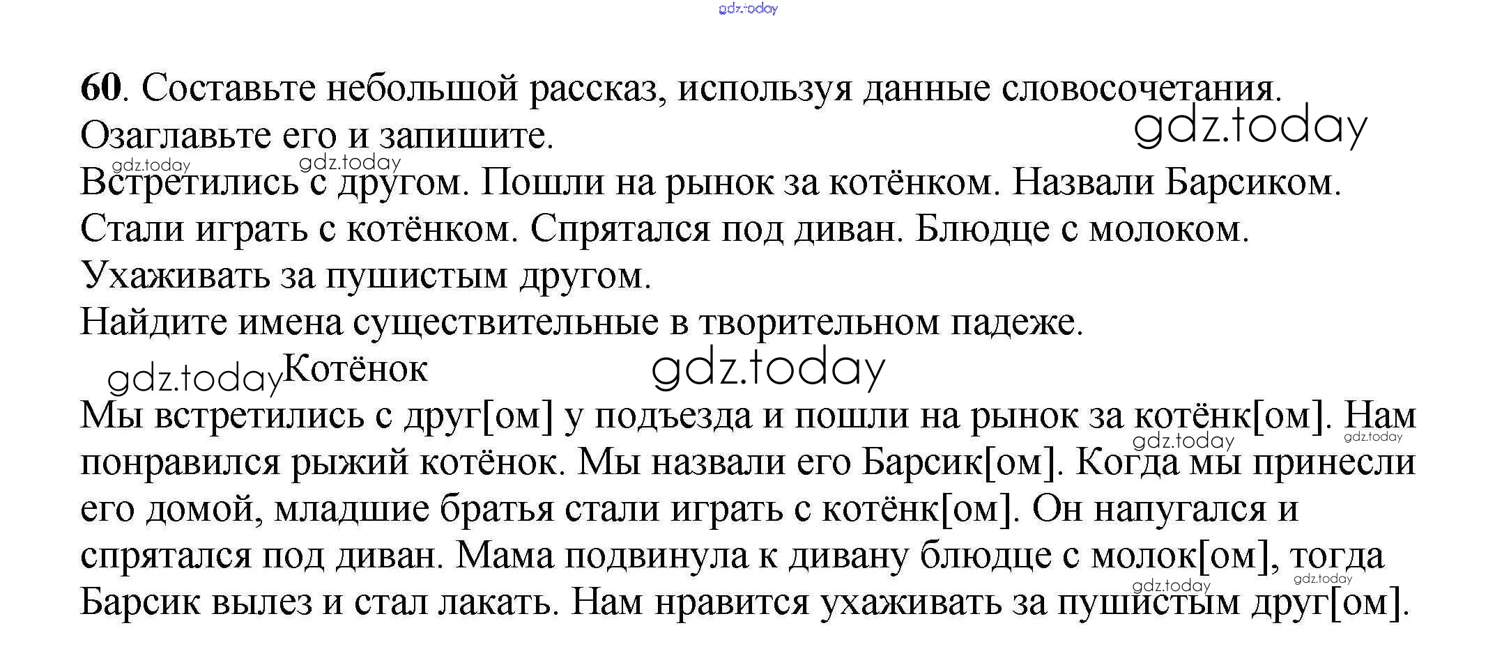 На страницах сайта gdz.today вы найдете учебный и вспомогательный материал, направленный на улучшения знаний школьной программы. ГДЗ - онлайн мир знаний Часть 2. Решение к упражнениям 60 Учебнику по Русскому языку для 3 класса Климанова, Бабушкина Просвещение Перспектива 2014
