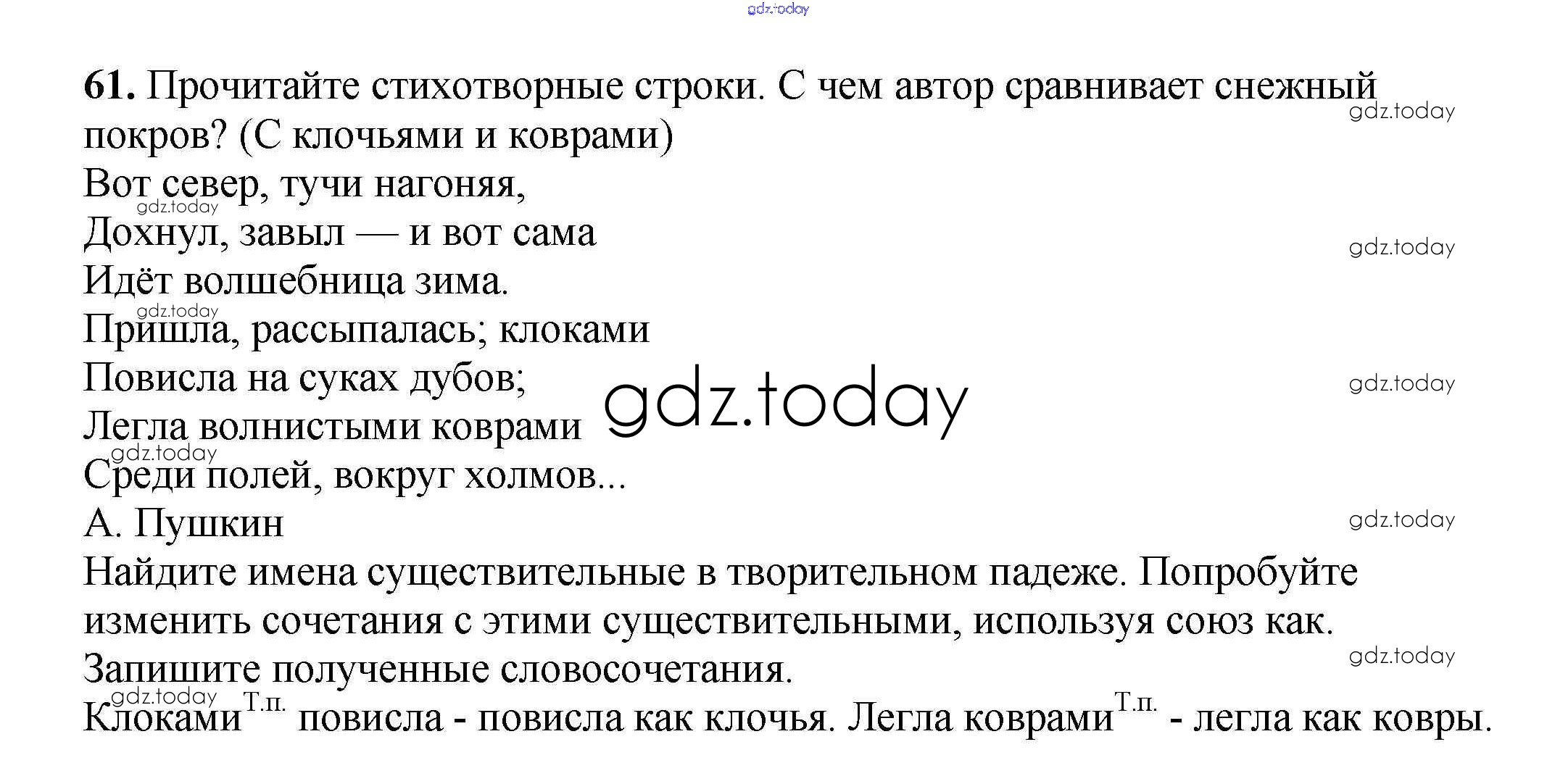 Ответы к Часть 2. Решение к упражнениям 61 Учебнику по Русскому языку для 3 класса Климанова, Бабушкина Просвещение Перспектива 2014