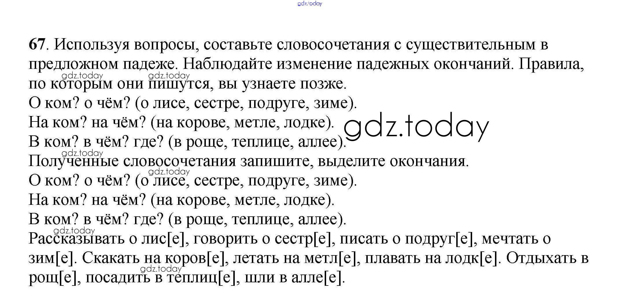 Ответы к Часть 2. Решение к упражнениям 67 Учебнику по Русскому языку для 3 класса Климанова, Бабушкина Просвещение Перспектива 2014