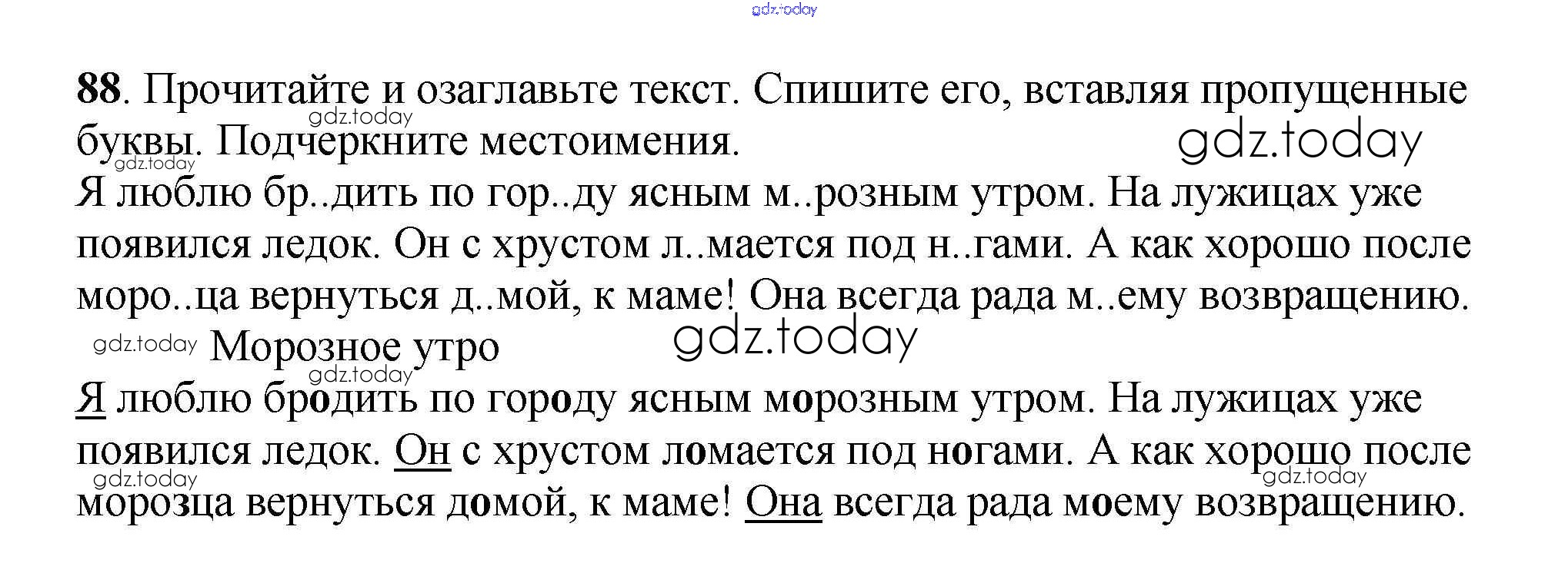 Ответы к Часть 2. Решение к упражнениям 88 Учебнику по Русскому языку для 3 класса Климанова, Бабушкина Просвещение Перспектива 2014