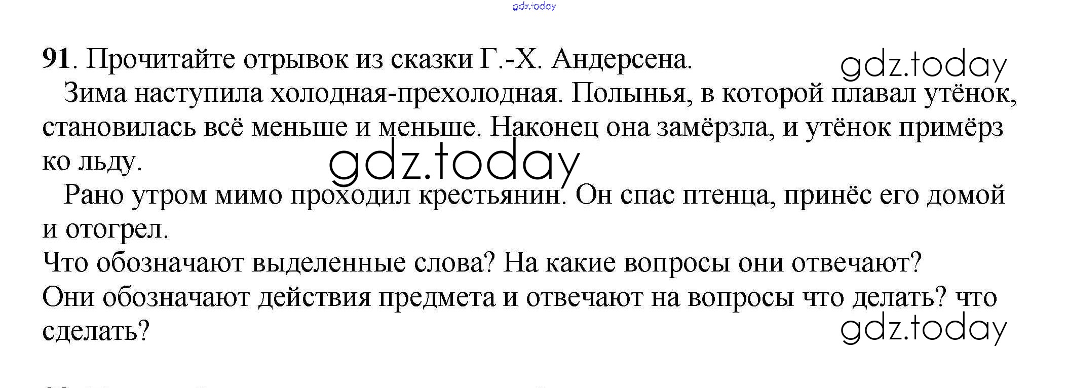 Ответы к Часть 2. Решение к упражнениям 91 Учебнику по Русскому языку для 3 класса Климанова, Бабушкина Просвещение Перспектива 2014