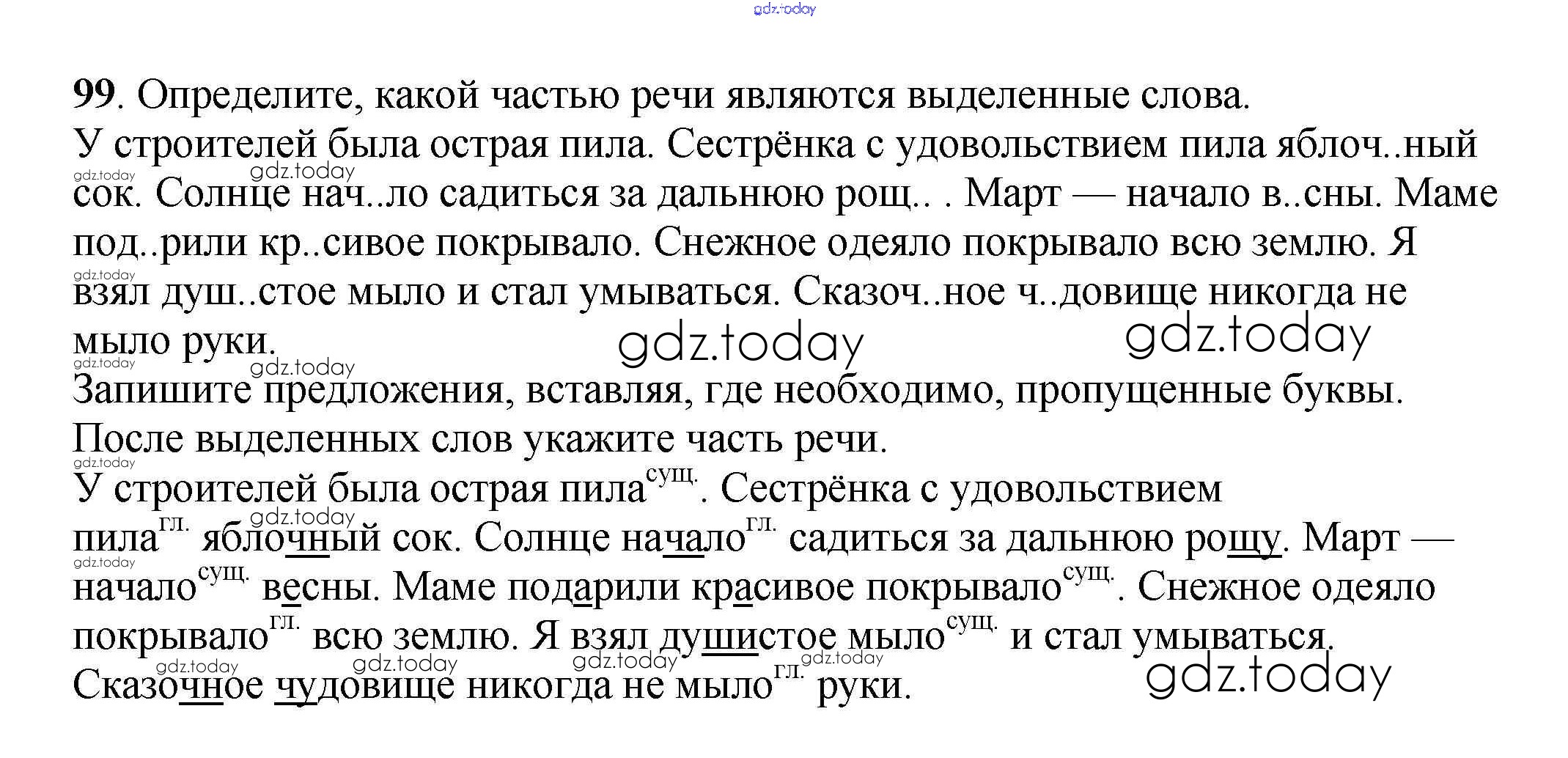 Ответы к Часть 2. Решение к упражнениям 99 Учебнику по Русскому языку для 3 класса Климанова, Бабушкина Просвещение Перспектива 2014