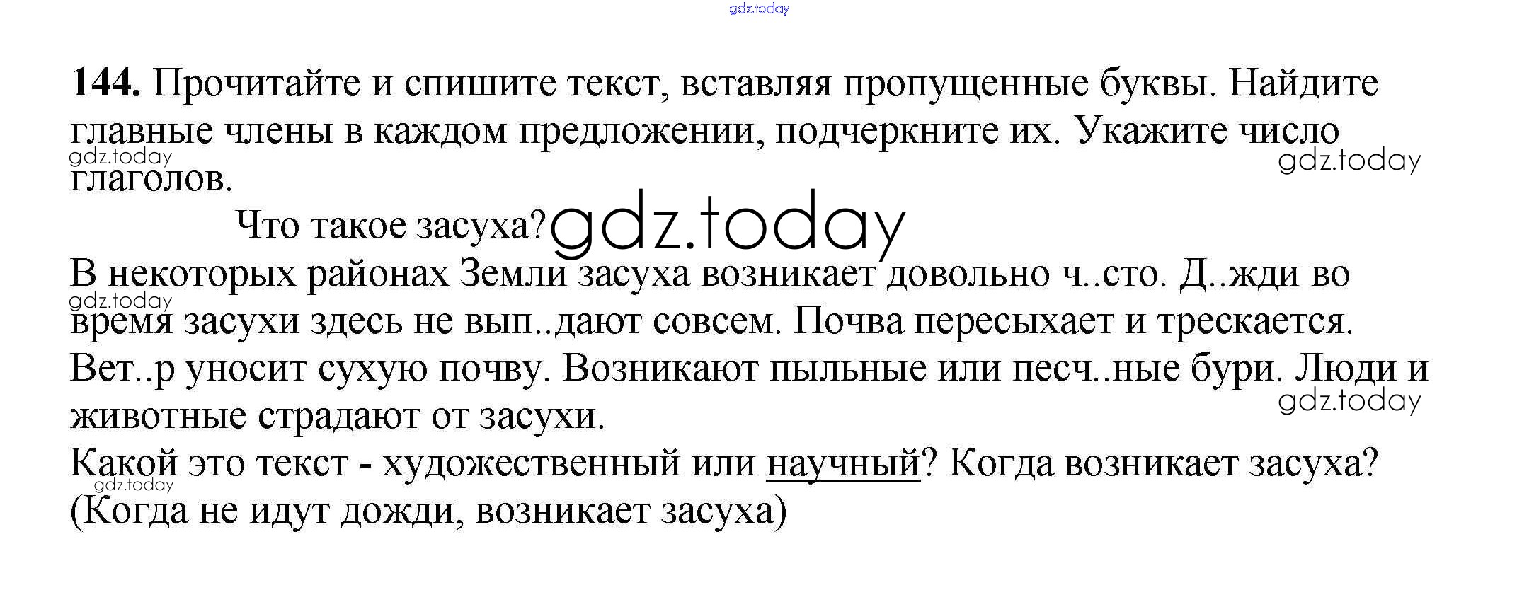 Ответы к Часть 2. Решение к упражнениям 144 Учебнику по Русскому языку для 3 класса Климанова, Бабушкина Просвещение Перспектива 2014