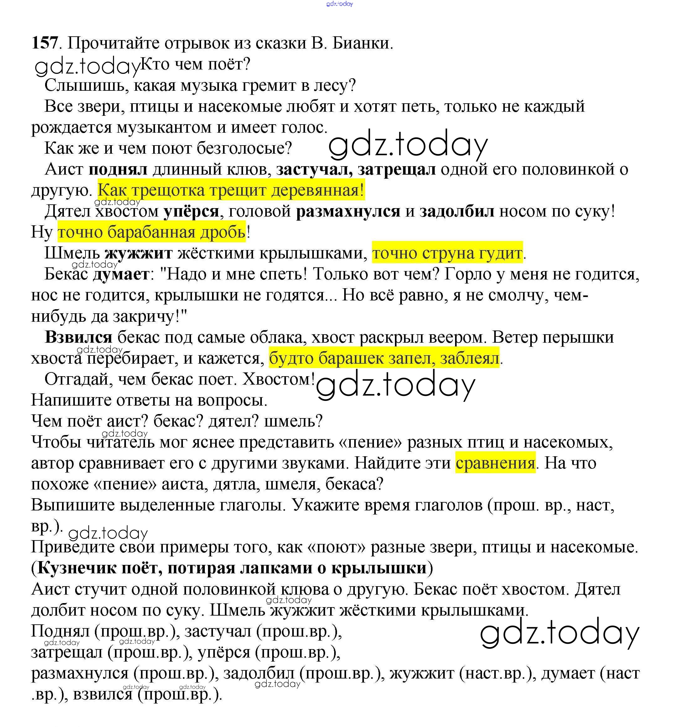 Ответы к Часть 2. Решение к упражнениям 157 Учебнику по Русскому языку для 3 класса Климанова, Бабушкина Просвещение Перспектива 2014
