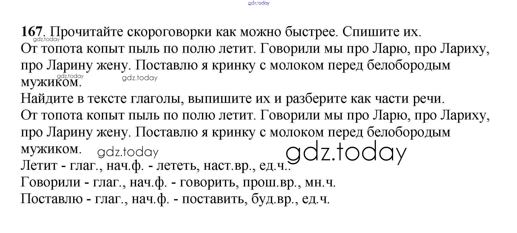 Ответы к Часть 2. Решение к упражнениям 167 Учебнику по Русскому языку для 3 класса Климанова, Бабушкина Просвещение Перспектива 2014