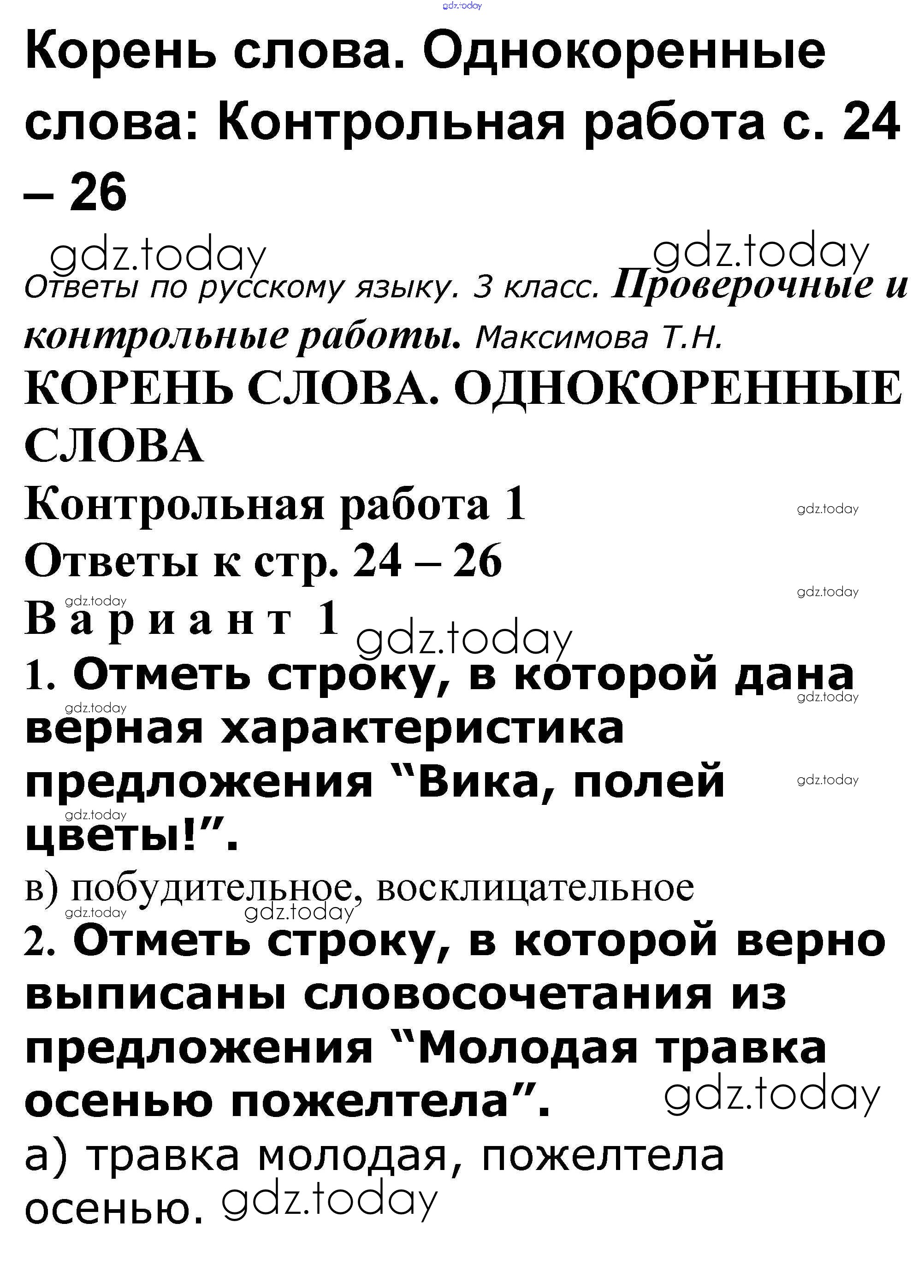 На страницах сайта gdz.today вы найдете учебный и вспомогательный материал, направленный на улучшения знаний школьной программы. ГДЗ - онлайн мир знаний Решение к теме "Корень слова. Однокоренные слова" 24-26 Проверочным и контрольным работам по Русскому языку для 3 класса Максимова ВАКО 2018