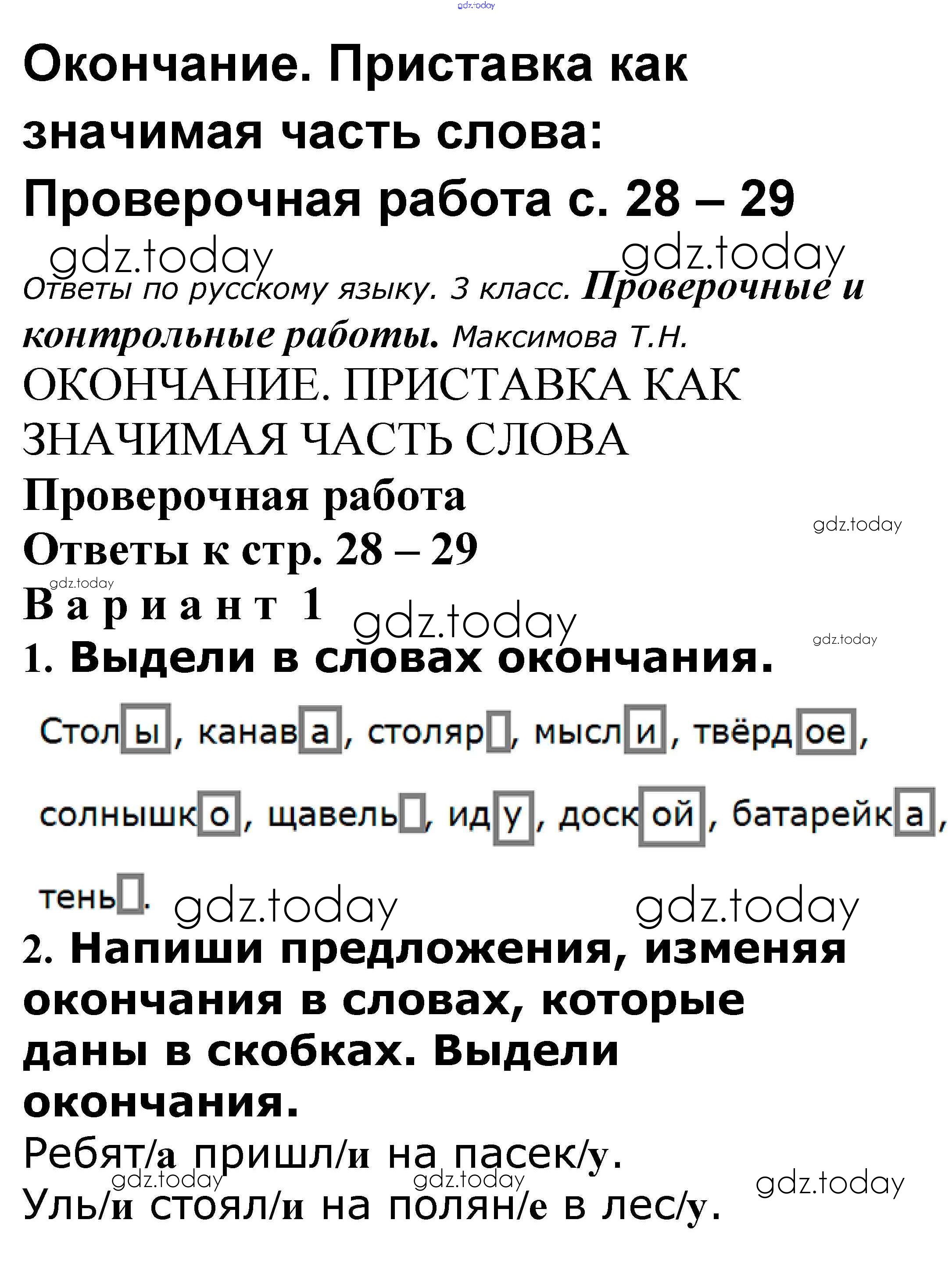 Ответы к Решение к теме "Окончание. Приставка как значимая часть слова" 28-29 Проверочным и контрольным работам по Русскому языку для 3 класса Максимова ВАКО 2018