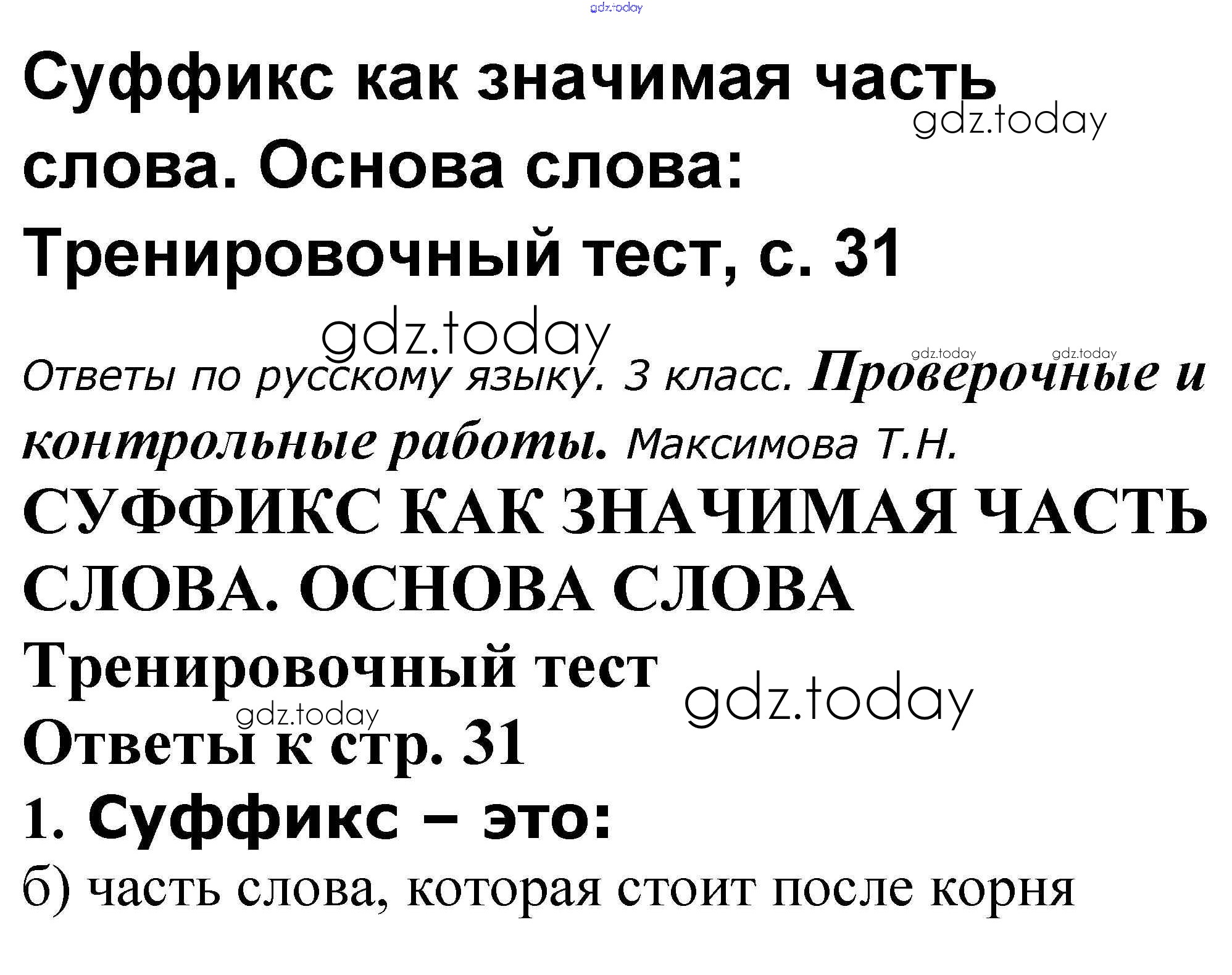 На страницах сайта gdz.today вы найдете учебный и вспомогательный материал, направленный на улучшения знаний школьной программы. ГДЗ - онлайн мир знаний Решение к теме "Суффикс как значимая часть слова. Основа слова" 31 Проверочным и контрольным работам по Русскому языку для 3 класса Максимова ВАКО 2018